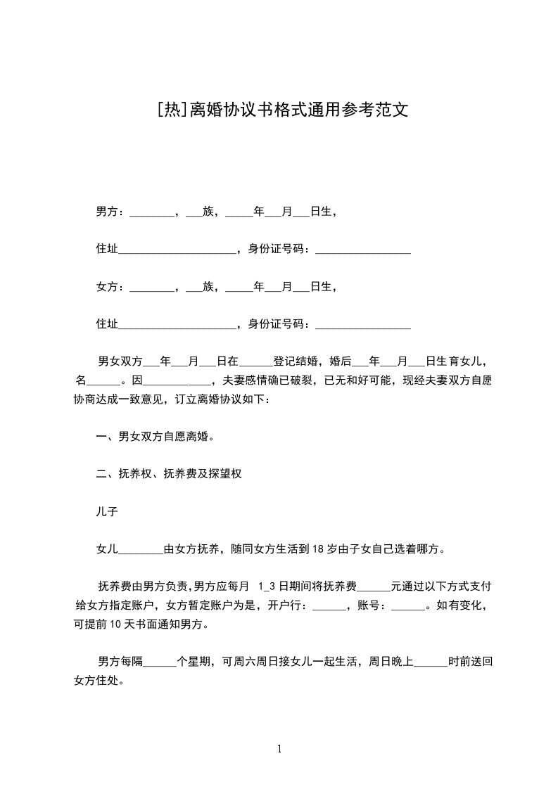 男女双方___年___月___日在______登记结婚,婚后___年___月___日生育女儿,名______。因____________,夫妻感情确已破裂,已无和好可能,现经夫妻双方自愿协商达成一致意见,订立离婚协议如下: