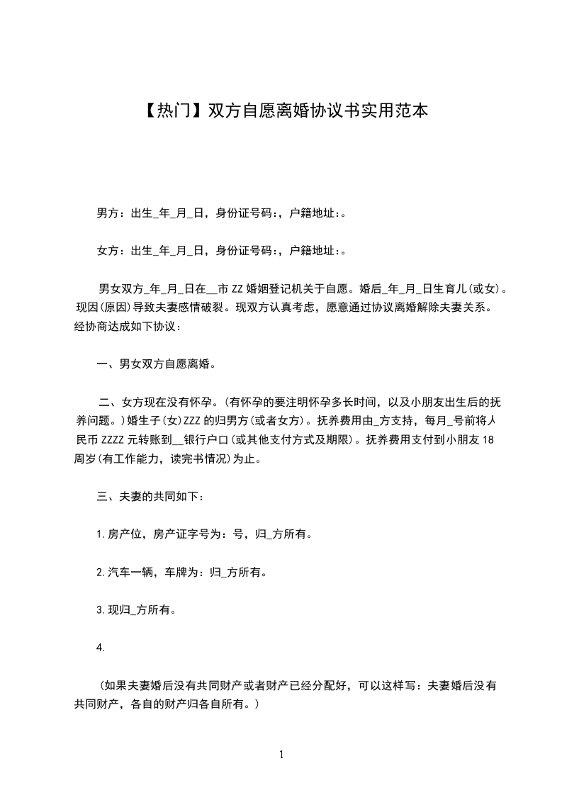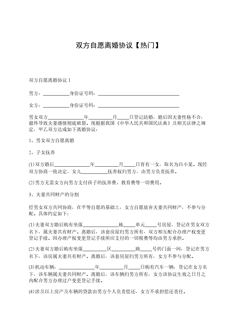 本协议一式叁份,双方各执一份,婚姻登记机关存档一份,在双方签字,并经婚姻登记机关办理离婚手续后生效。