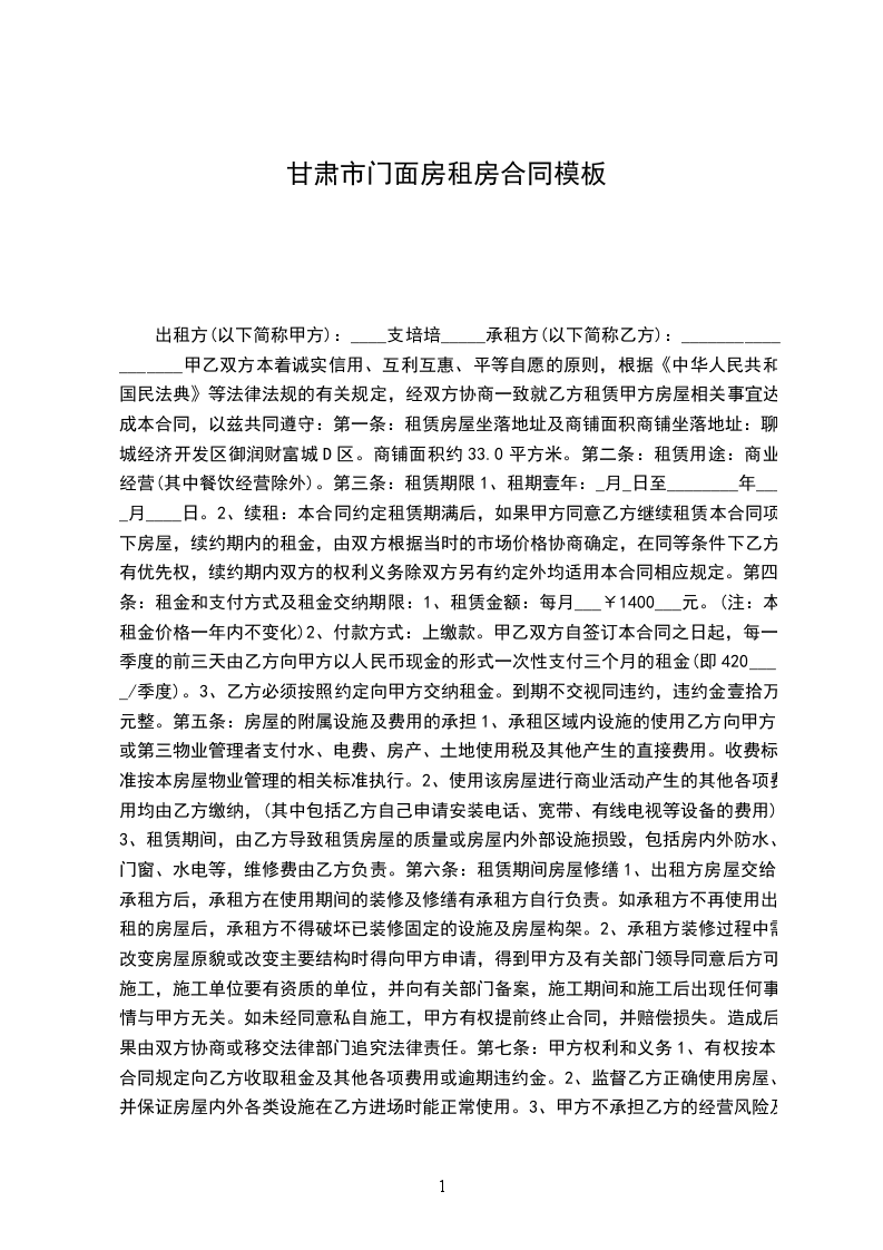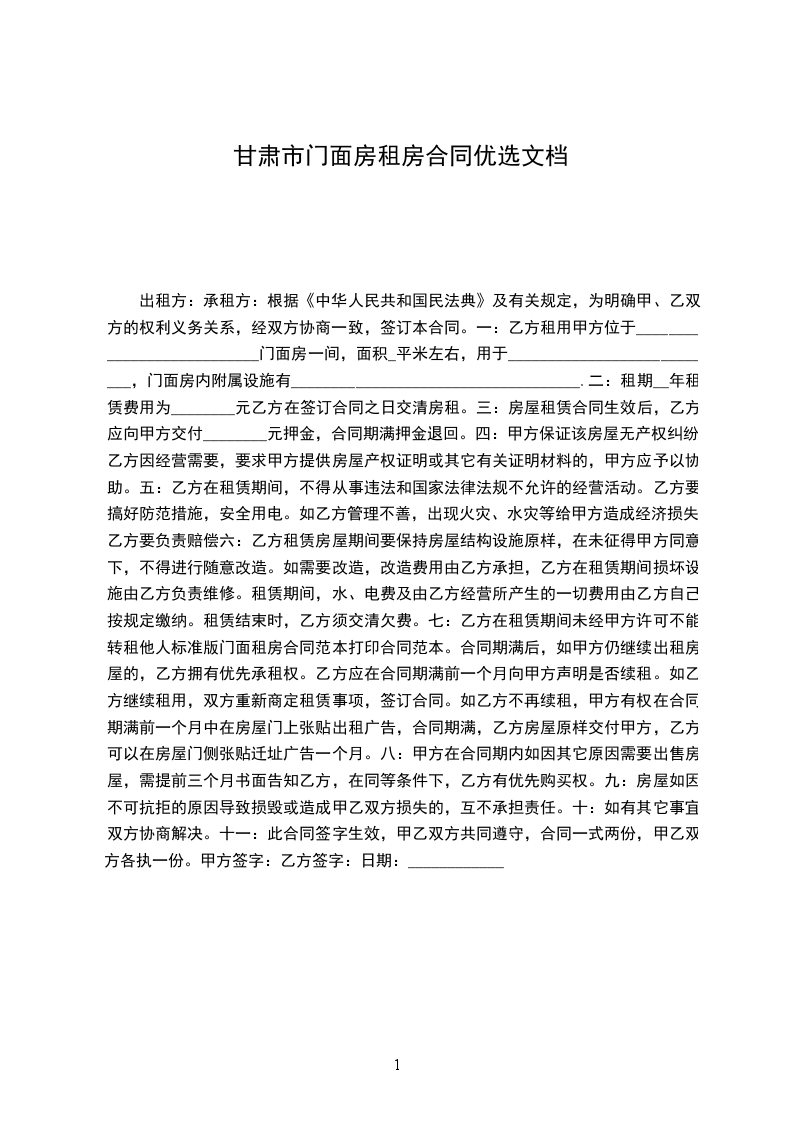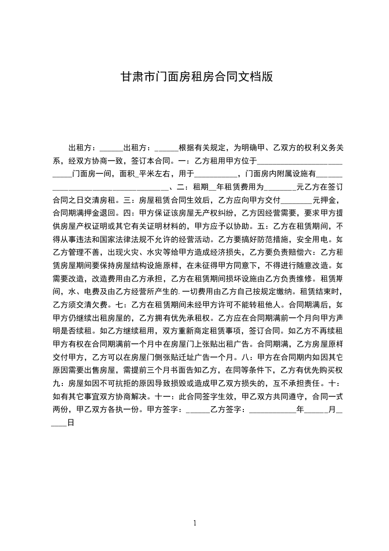 一、房屋地址甲方出租的商铺坐落于街号,建筑面积__平方米。