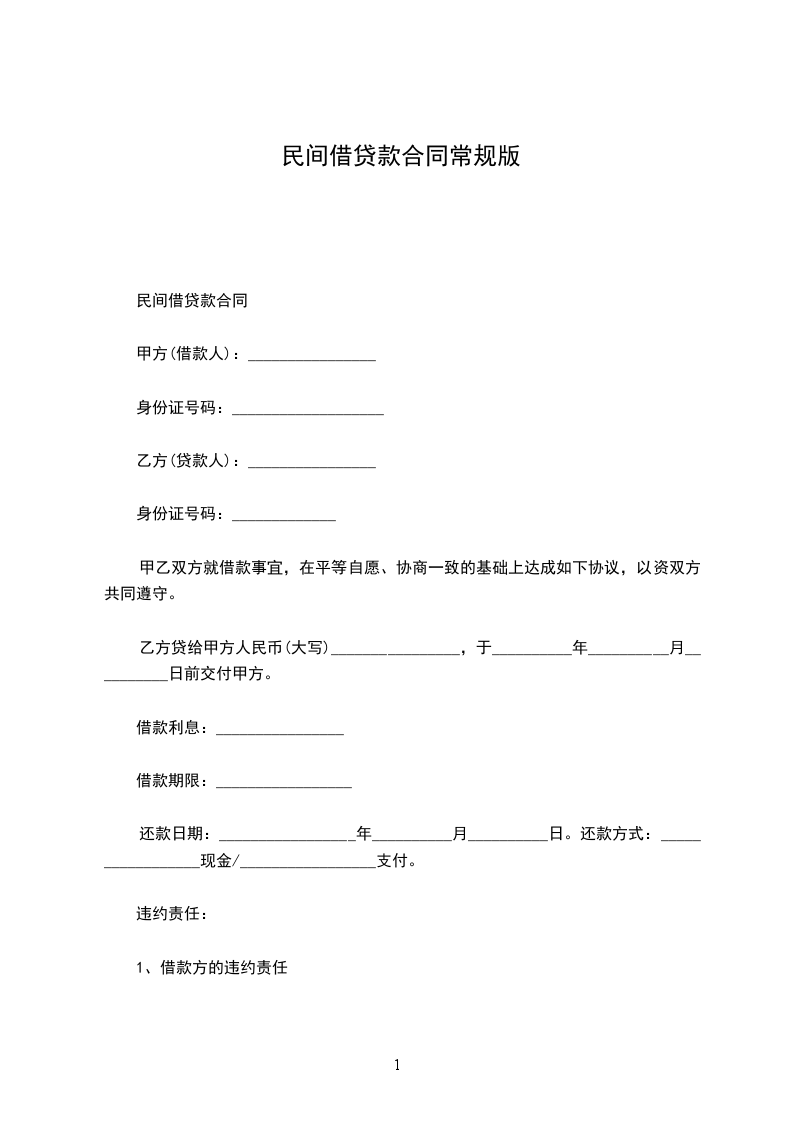 五、违约责任:_____________________________________________民间借款合同六、本合同自_____________________生效。本合同一式两份,双方各执一份。