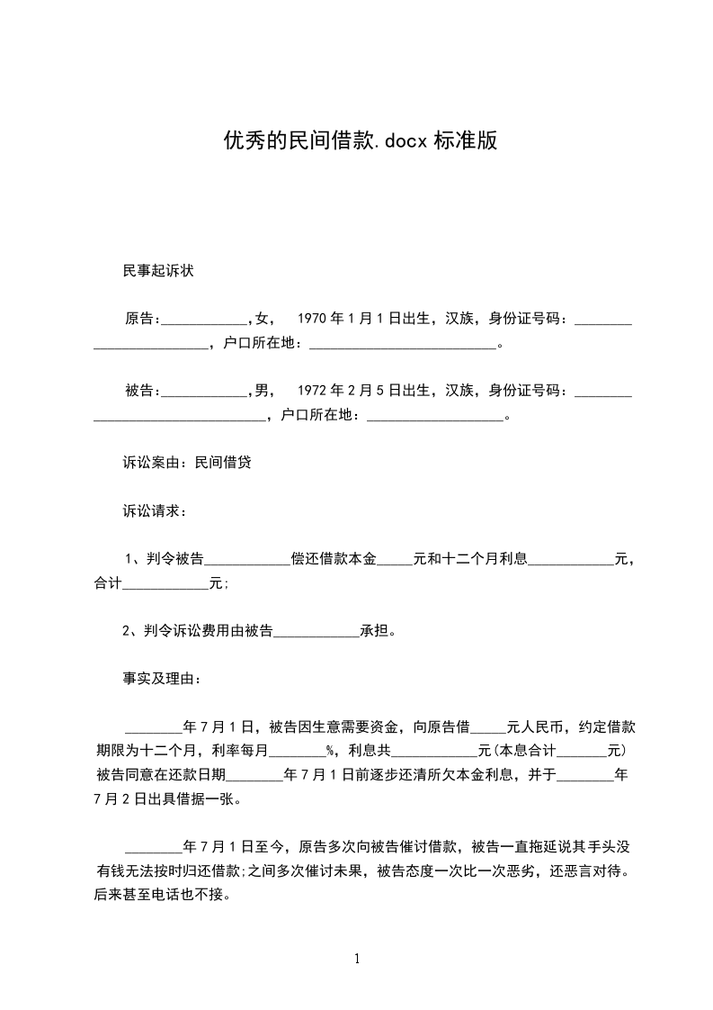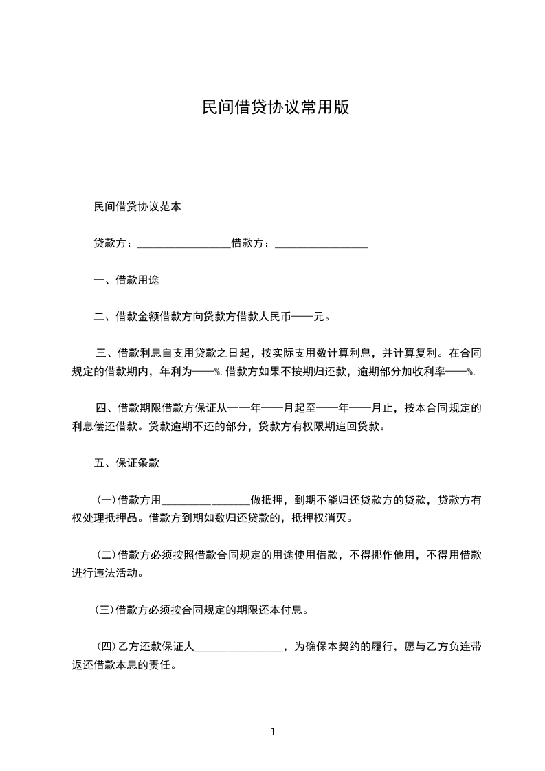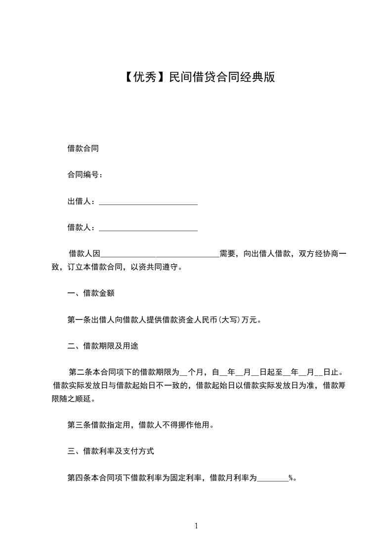 一、乙方贷给甲方人民币(大写)_____________________,_____________________前交付甲方。