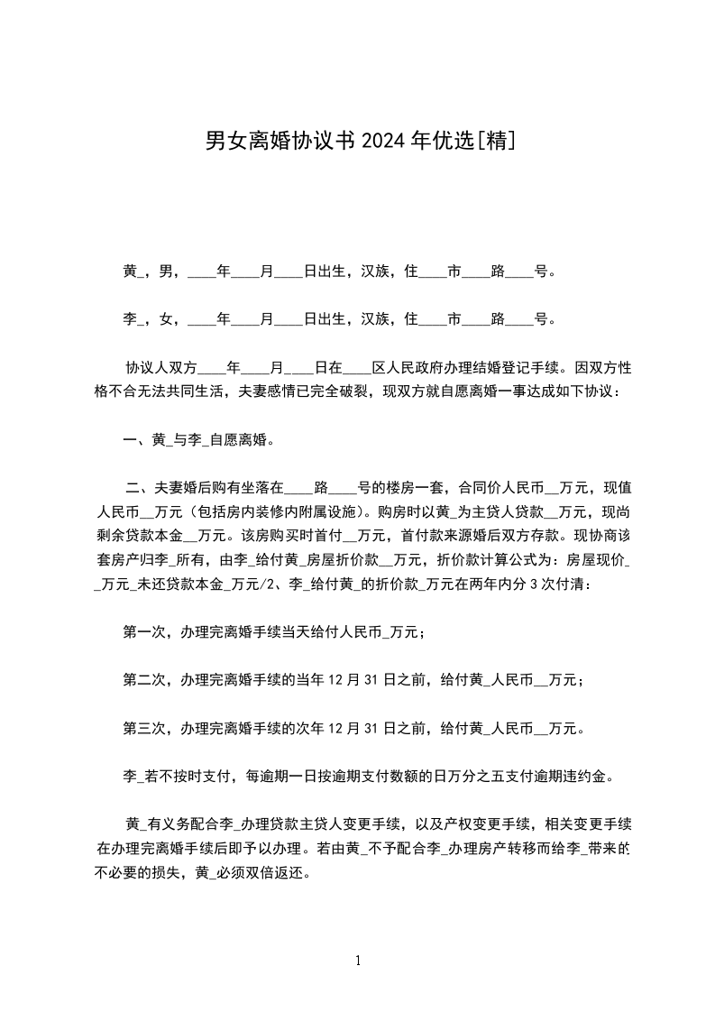 一、黄_与李_自愿离婚。