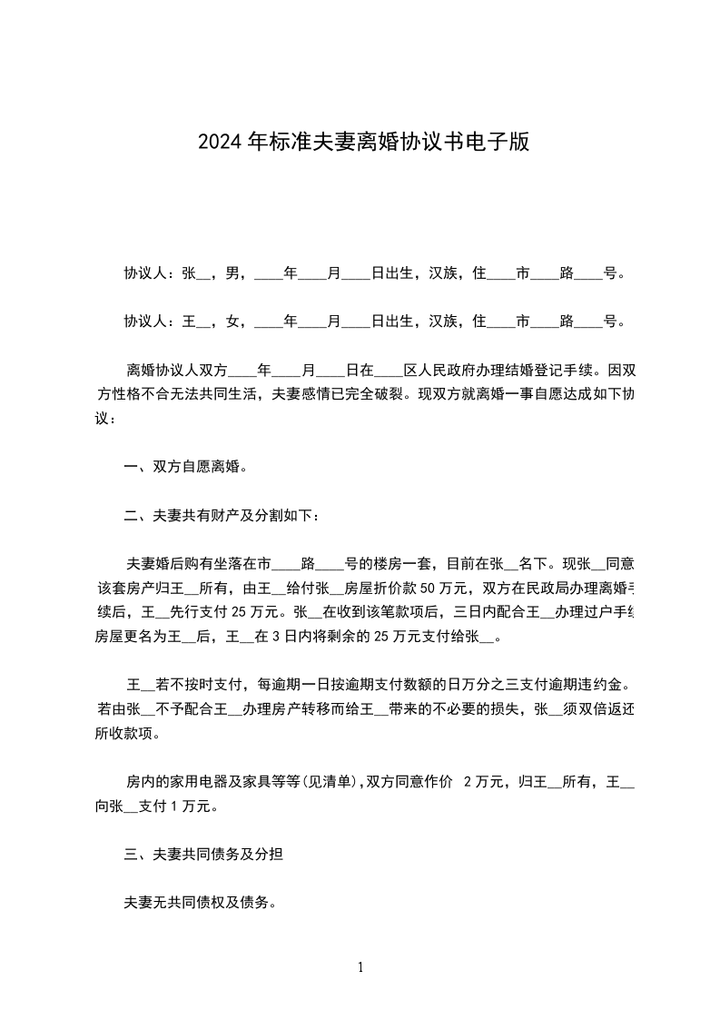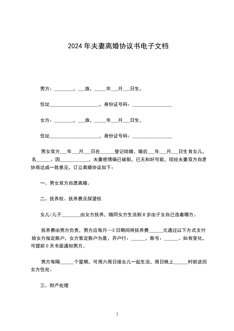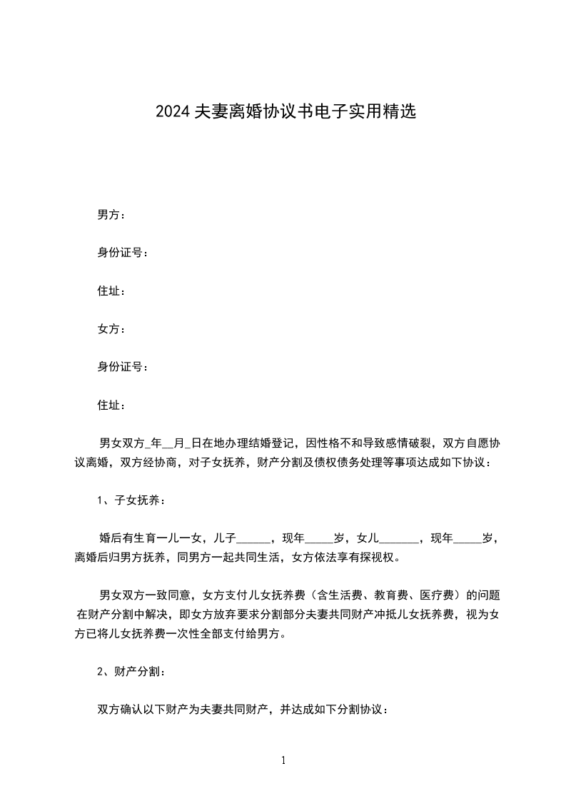 男女双方_年__月_日在地办理结婚登记,因性格不和导致感情破裂,双方自愿协议离婚,双方经协商,对子女抚养,财产分割及债权债务处理等事项达成如下协议: