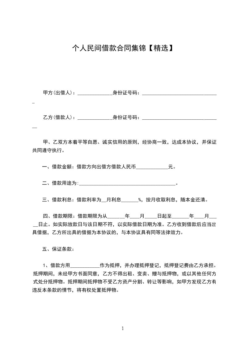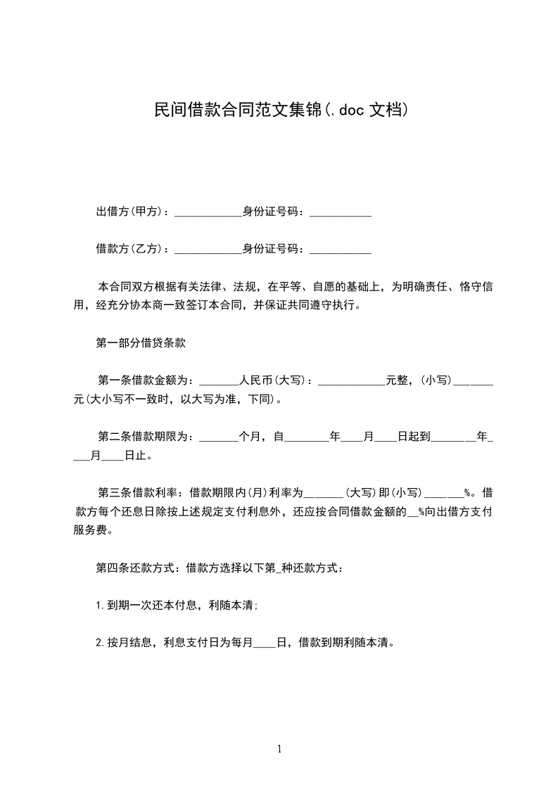 第一条借款金额金额(大写)_____元整(小写)_____元。