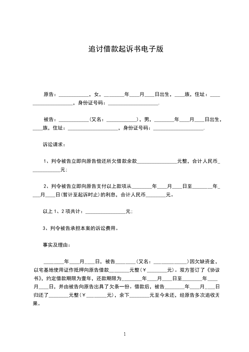 1、判令被告立即向原告偿还所欠借款余款________________元整,合计人民币____________元;