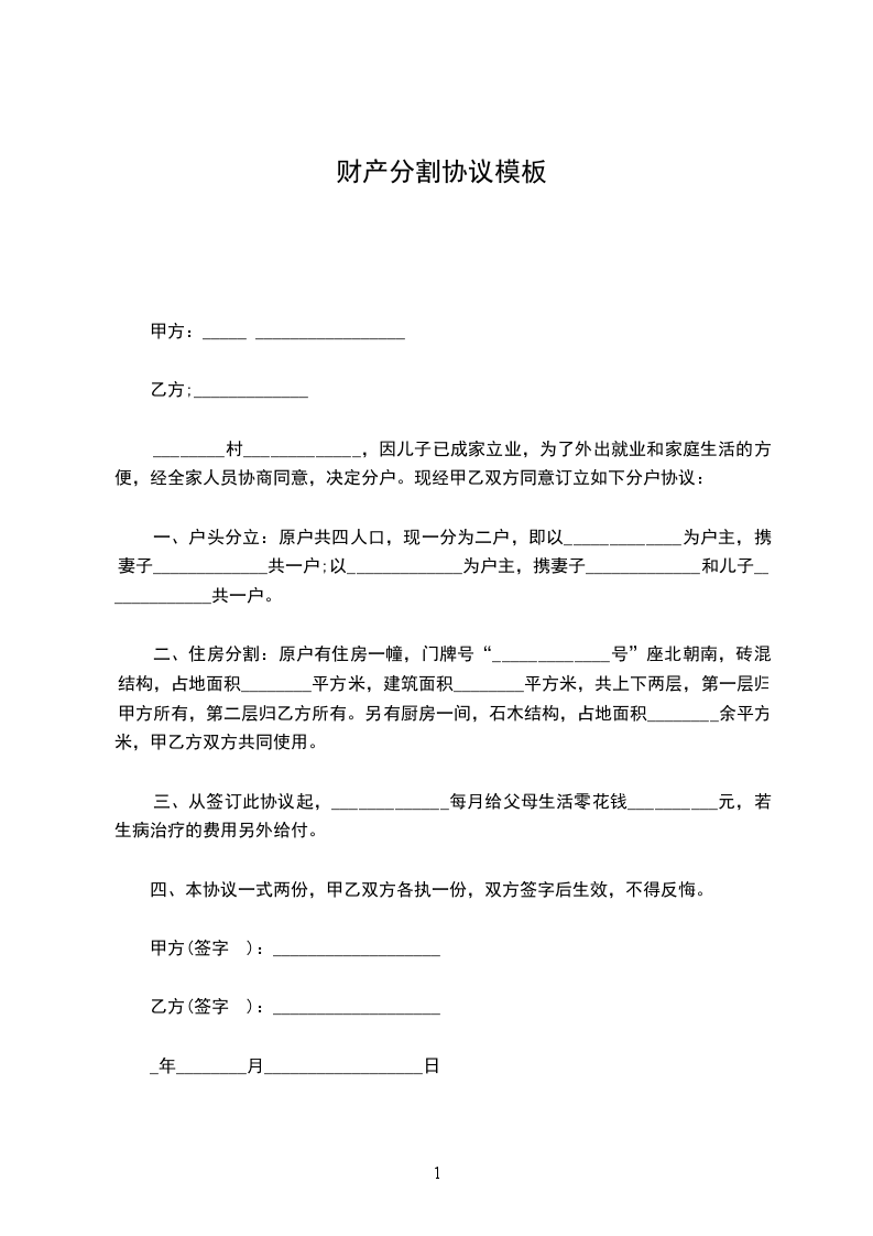 离婚财产分割协议1