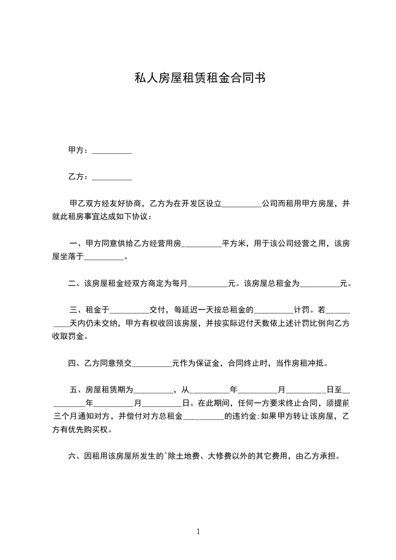六、租赁期间,任何一方提出终止合同,需提前_________个月书面通知对方,经双方协商后签订终止合同书。若一方强行中止合同,须向另一方支付违约金_________元。