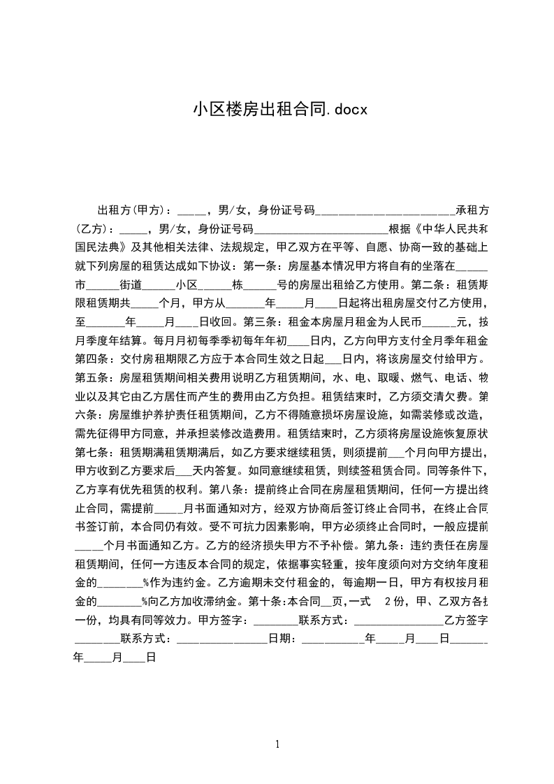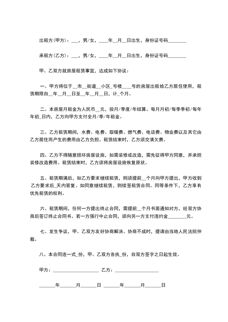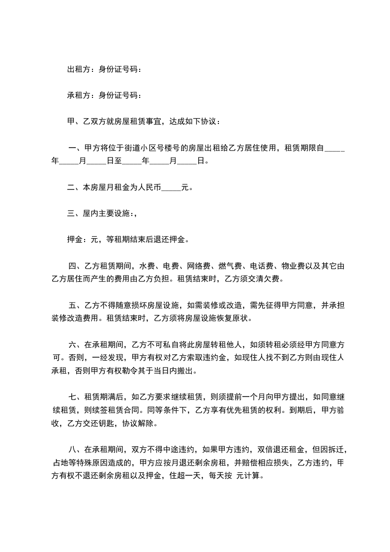 甲方(出租方):_______________________ 乙方(承租方):_______________________