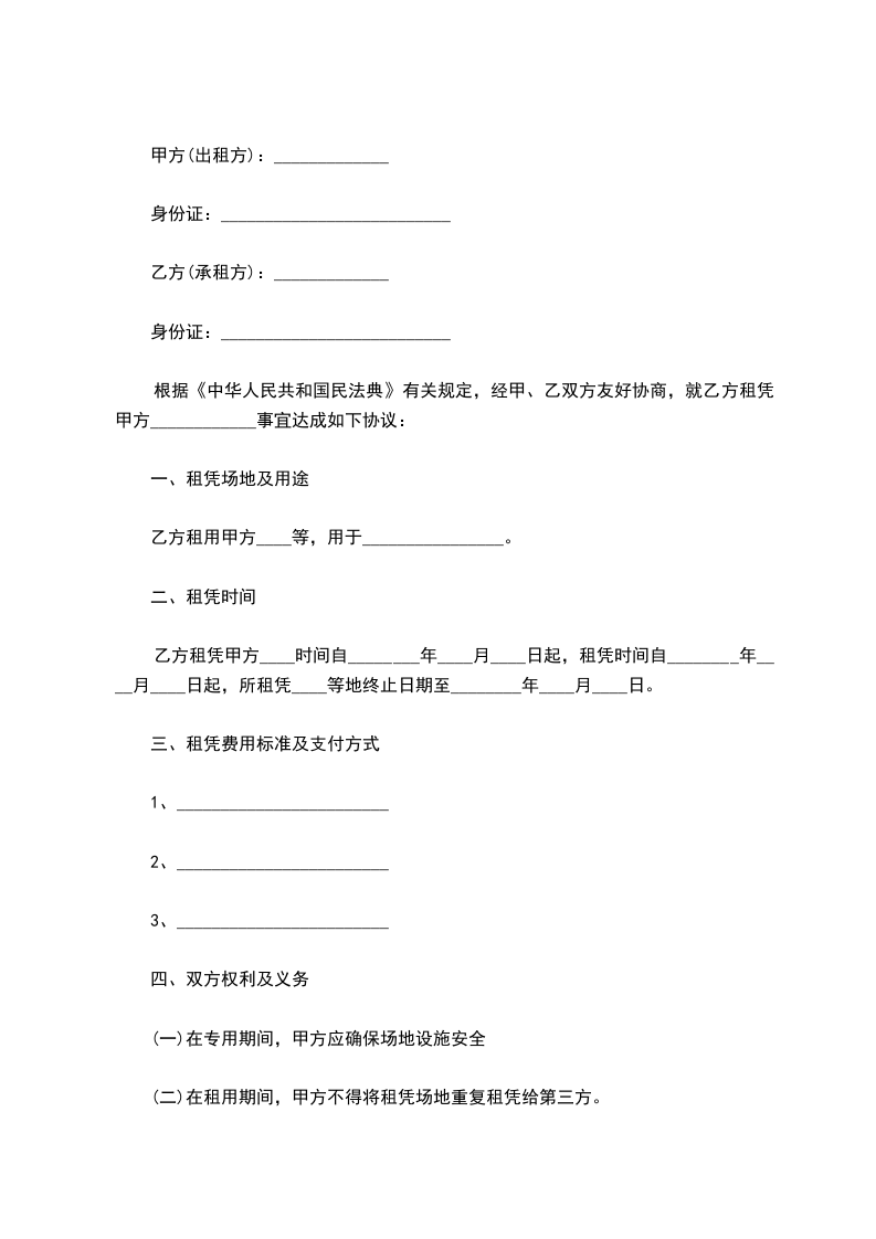 (二)在租用期间,甲方不得将租凭场地重复租凭给第三方。