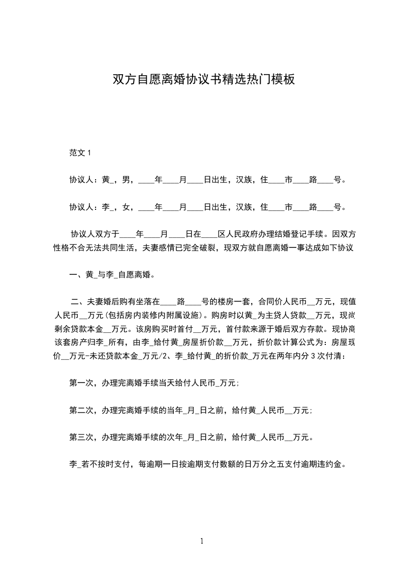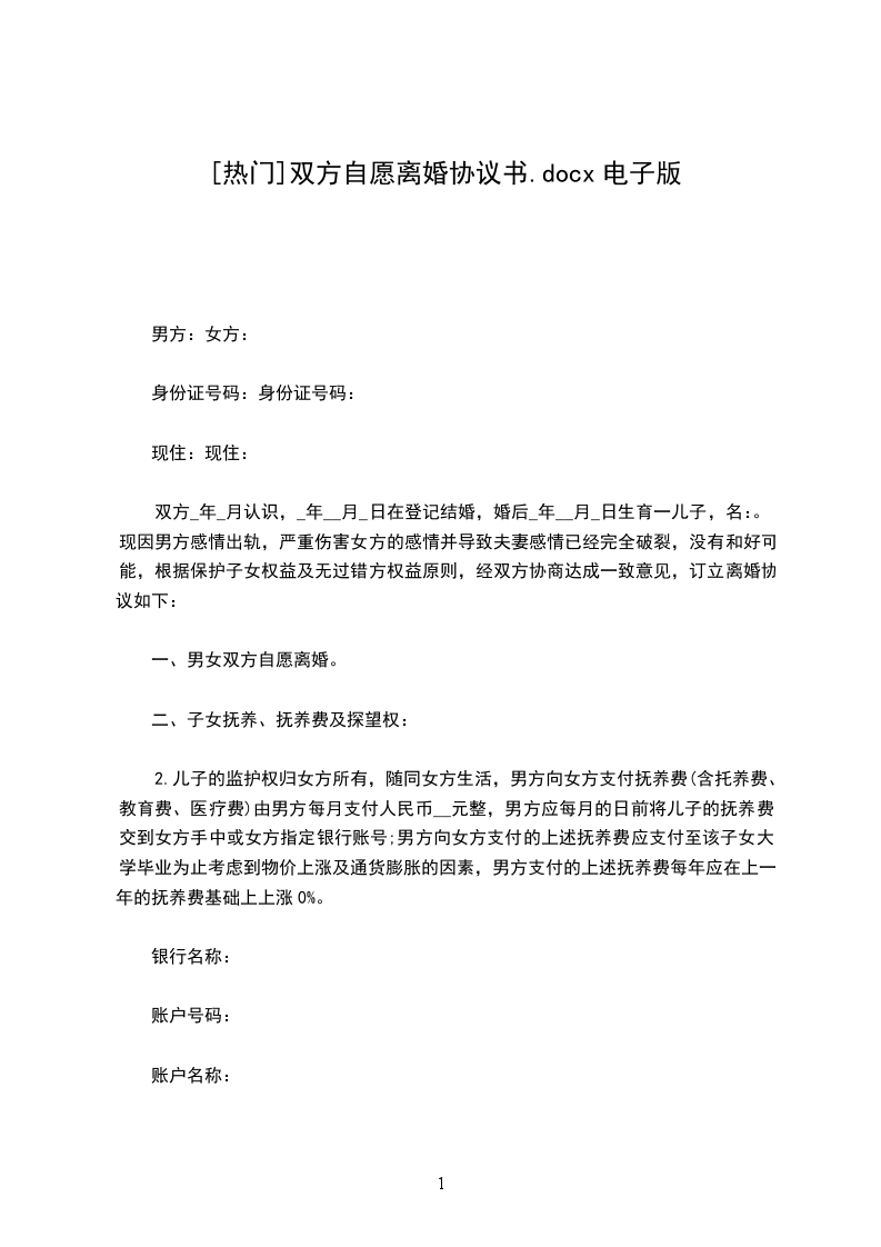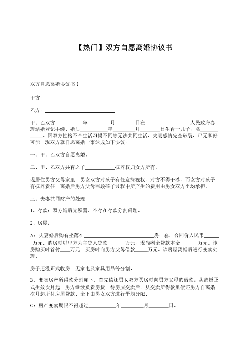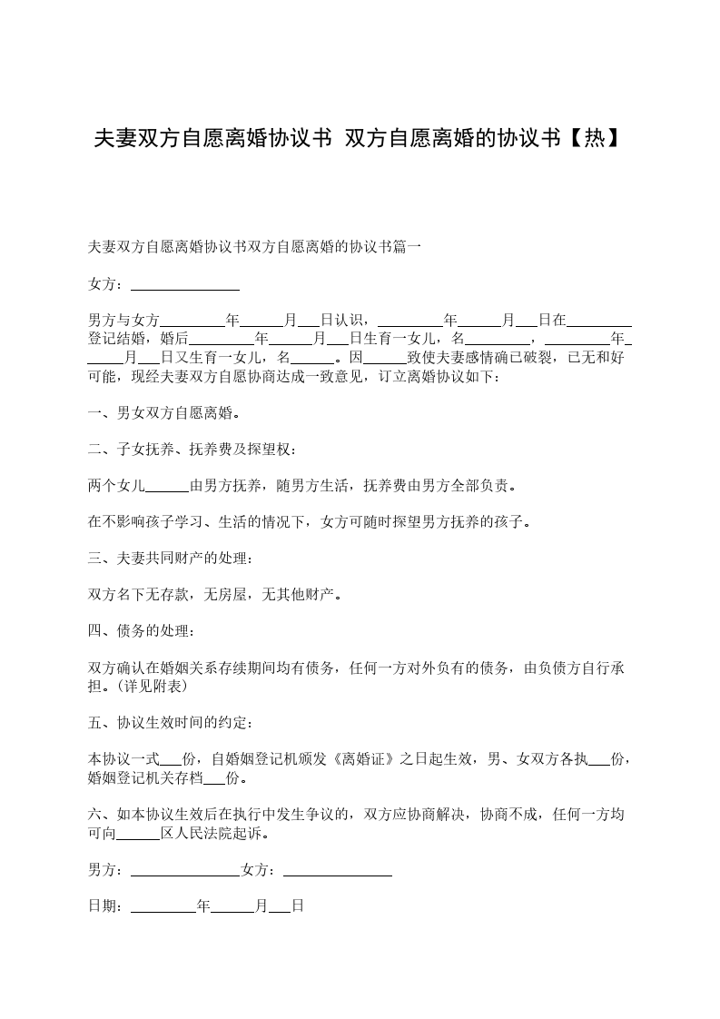 双方自愿离婚协议书男方姓名:__________,民族:_____,身份证号:____________________,住址:_________________________________。