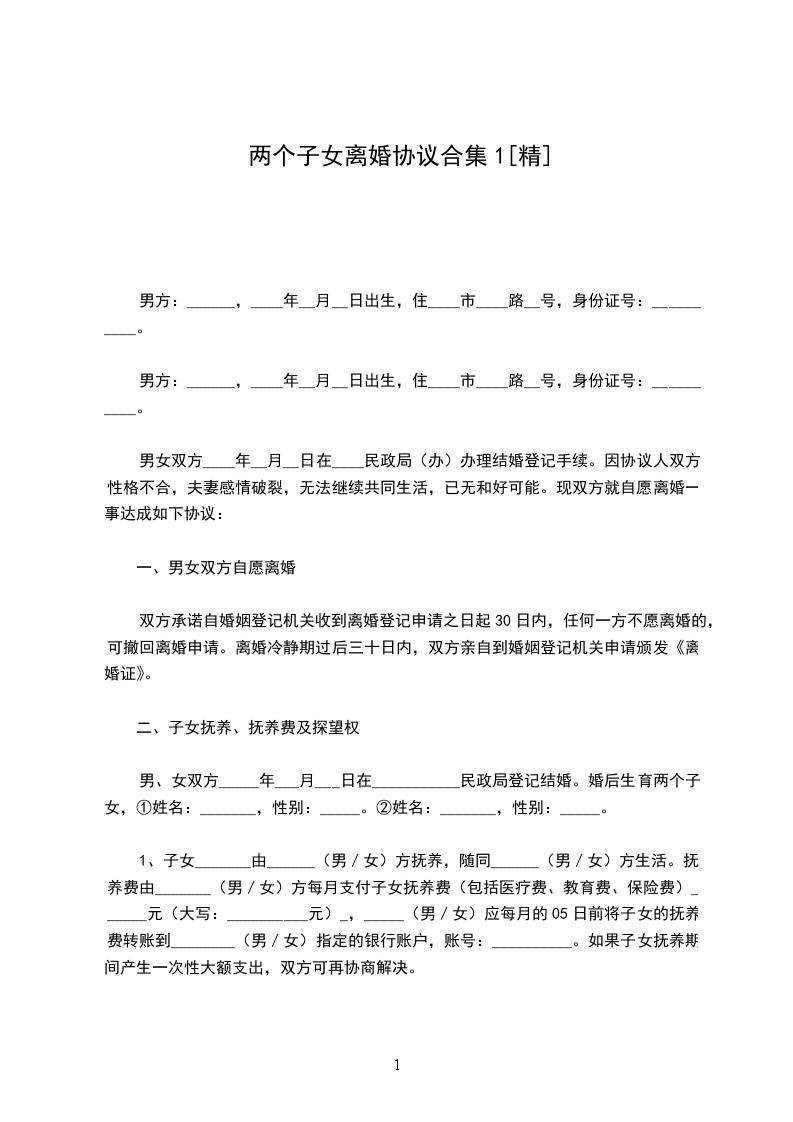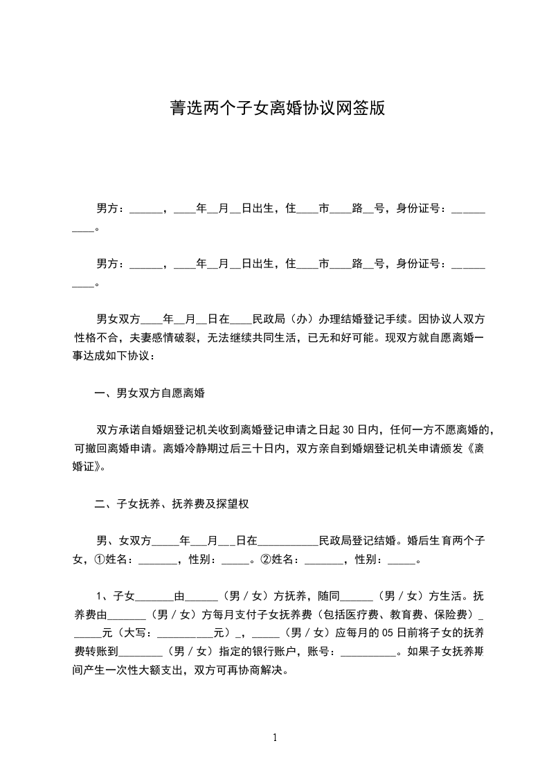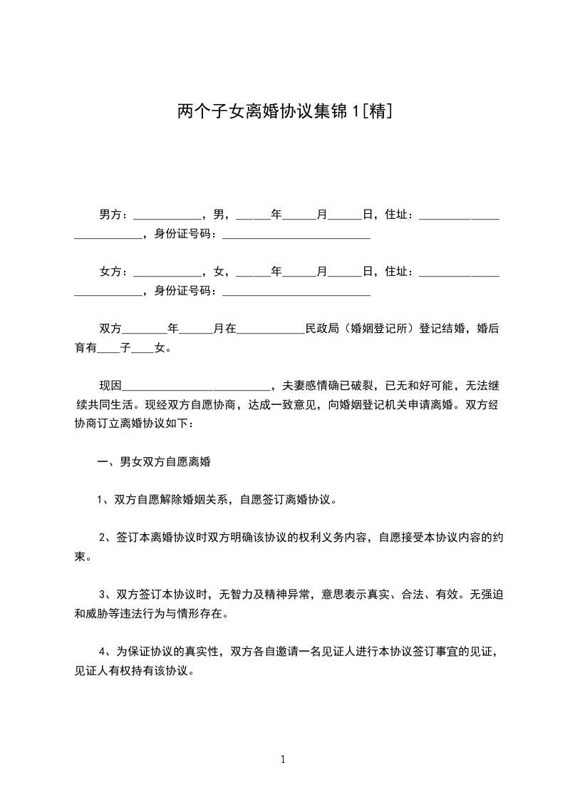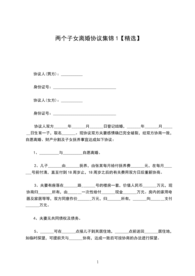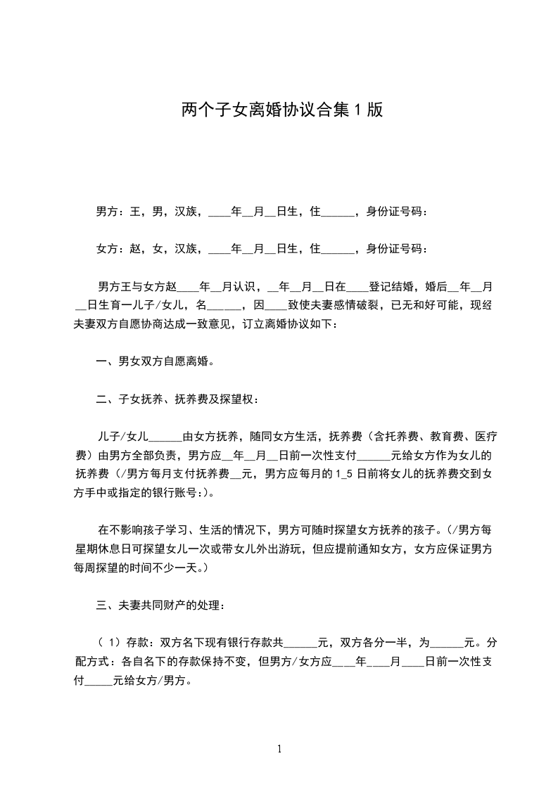 协议人双方_______年_______月_______日登记结婚,_______年_______月_______日生育一子,取名_______。现协议双方夫妻感情确已完全破裂,经双方协商一致,自愿离婚、财产分割及子女抚养事宜达成如下协议: