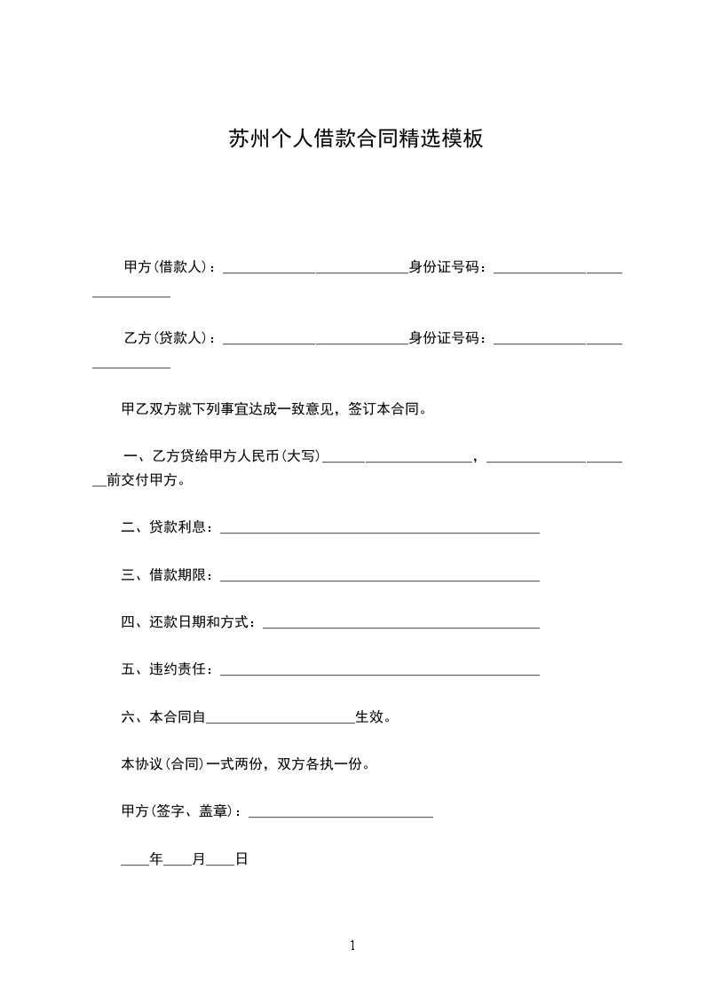 甲方(借款人):_____乙方(出借人):_____