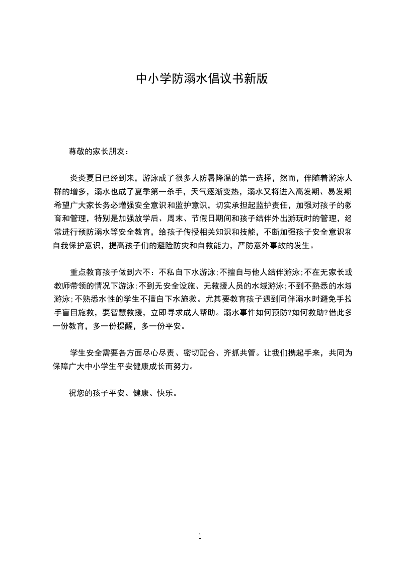 最后,再次提醒学生在日常生活中提高安全意识,安全第一,防患于未然。水无情,人有情。其实,只要我们在生活中注意各种安全事项,提高安全意识,学会如何自救,学会如何救助溺水的人,溺水事件是可以防止的。