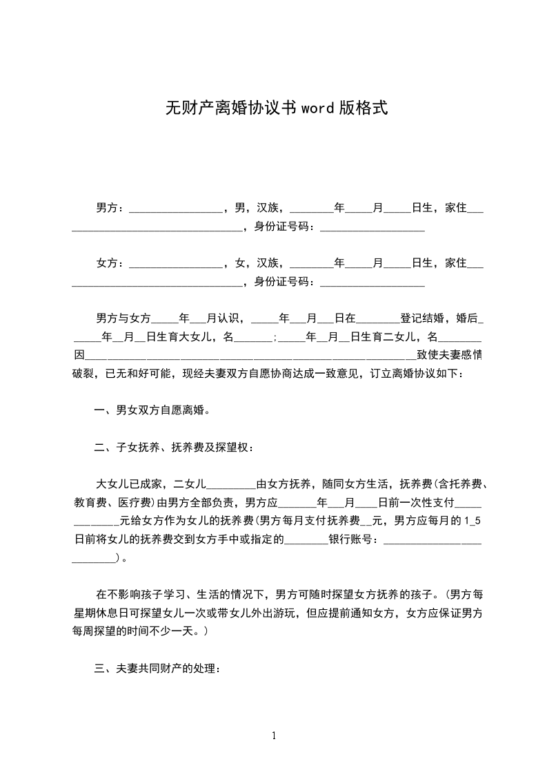 女方:出生_年_月_日,身份证号码:,户籍地址:。