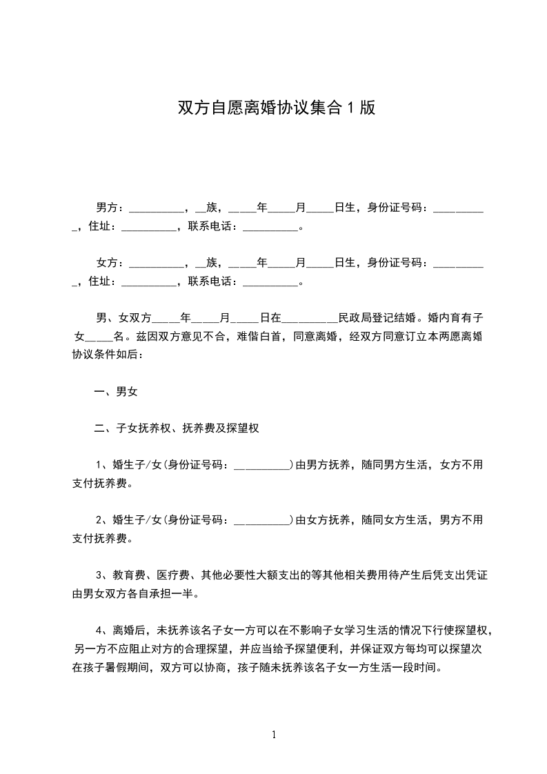 男方:______,男,汉族,______年______月______日生,住,身份证号码:_________________________________