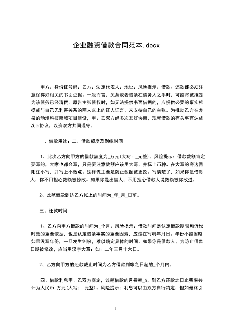 四、借款期限:借款期限壹年,自__年__月__日起至__年__月__日止。如实际放款日与该日期不符,以实际借款日期为准。乙方收到借款后应当出具收据,乙方所出具的收据为本合同的,与本合同具有同等法律效力。