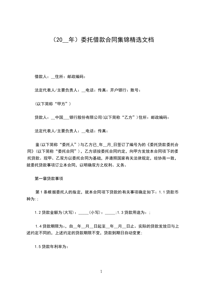 乙方接受委托人委托,根据国家有关委托贷款业务管理规定向甲方发放(币种)资金委托贷款。甲、乙双方按年委托字第___号《委托贷款委托合同》约定的条款和委托人__年__月__日提出的《委托贷款通知单》所列各项,并遵照国家有关法律规定,经协商一致,按以下条款订立本合同。