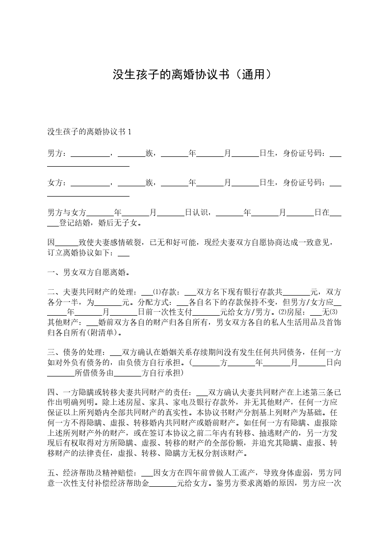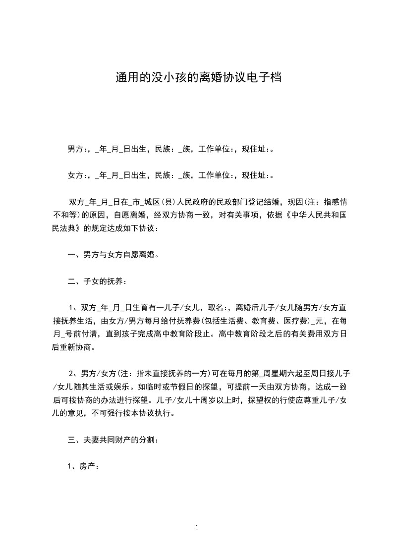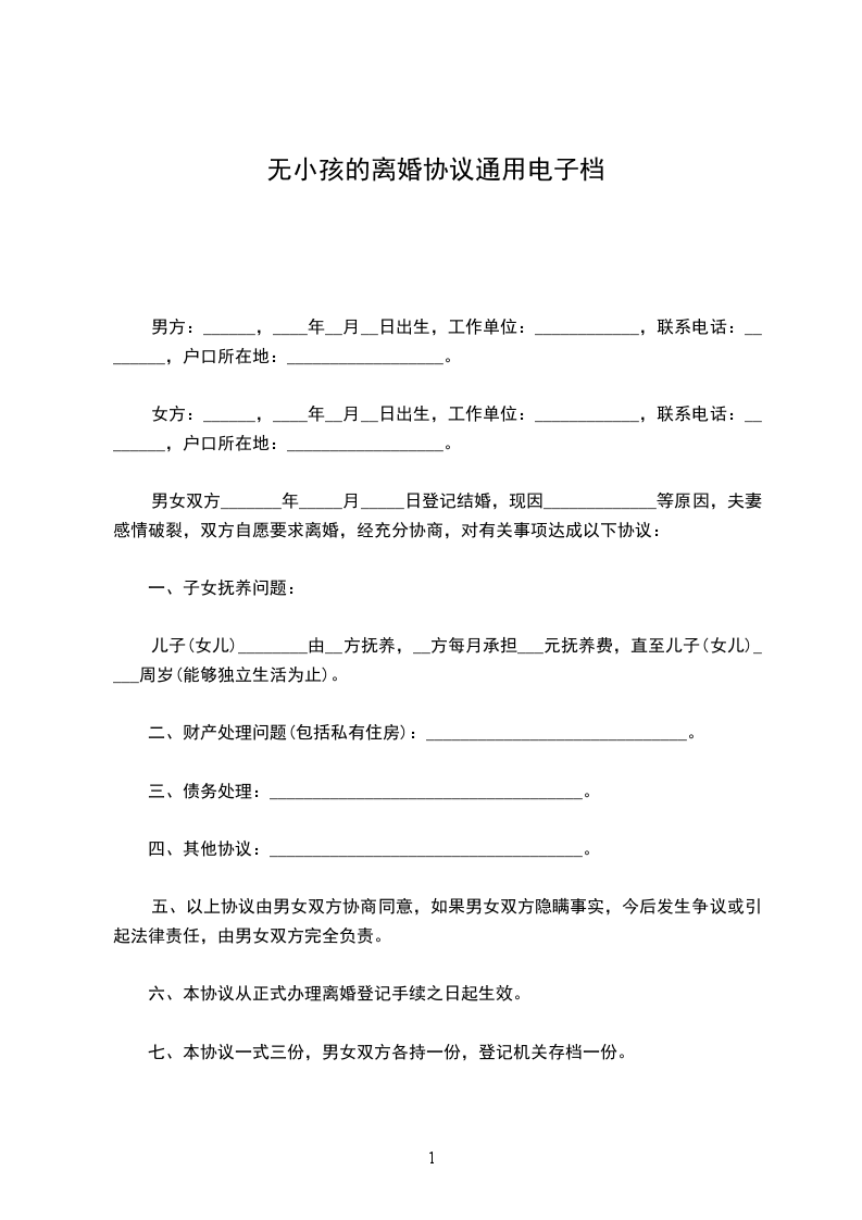 女方:,_年_月_日出生,民族:_族,工作单位:,现住址:。