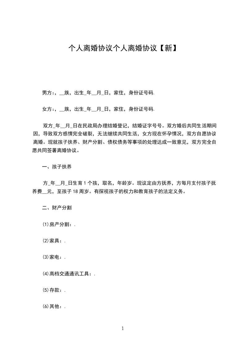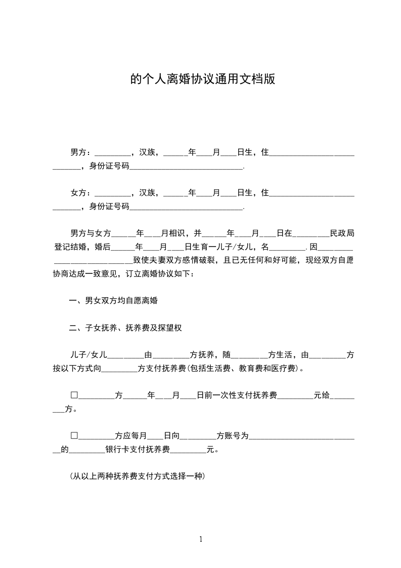 一、______与____自愿离婚。