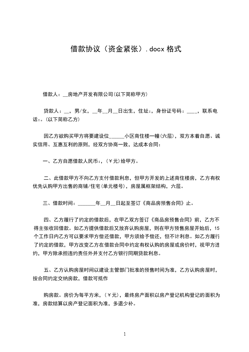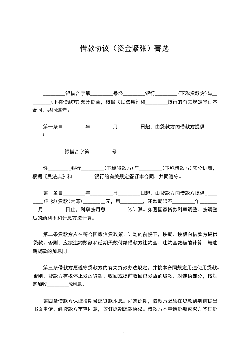 一、乙方贷给甲方人民币(大写)________________,________________前交付甲方。