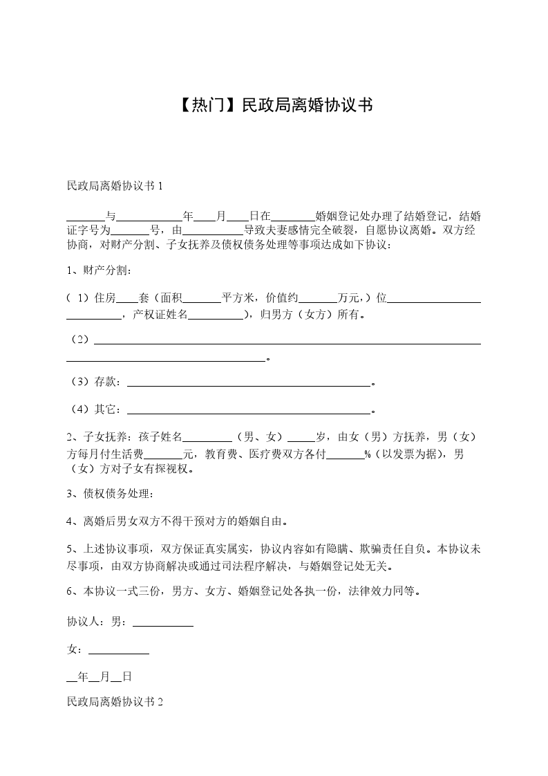 离婚协议书,是夫妻双方因感情破裂、基双方自愿的情况下签订的关解除婚姻关系相关事宜的经过婚姻登记机关或者法院认可的书面协议。