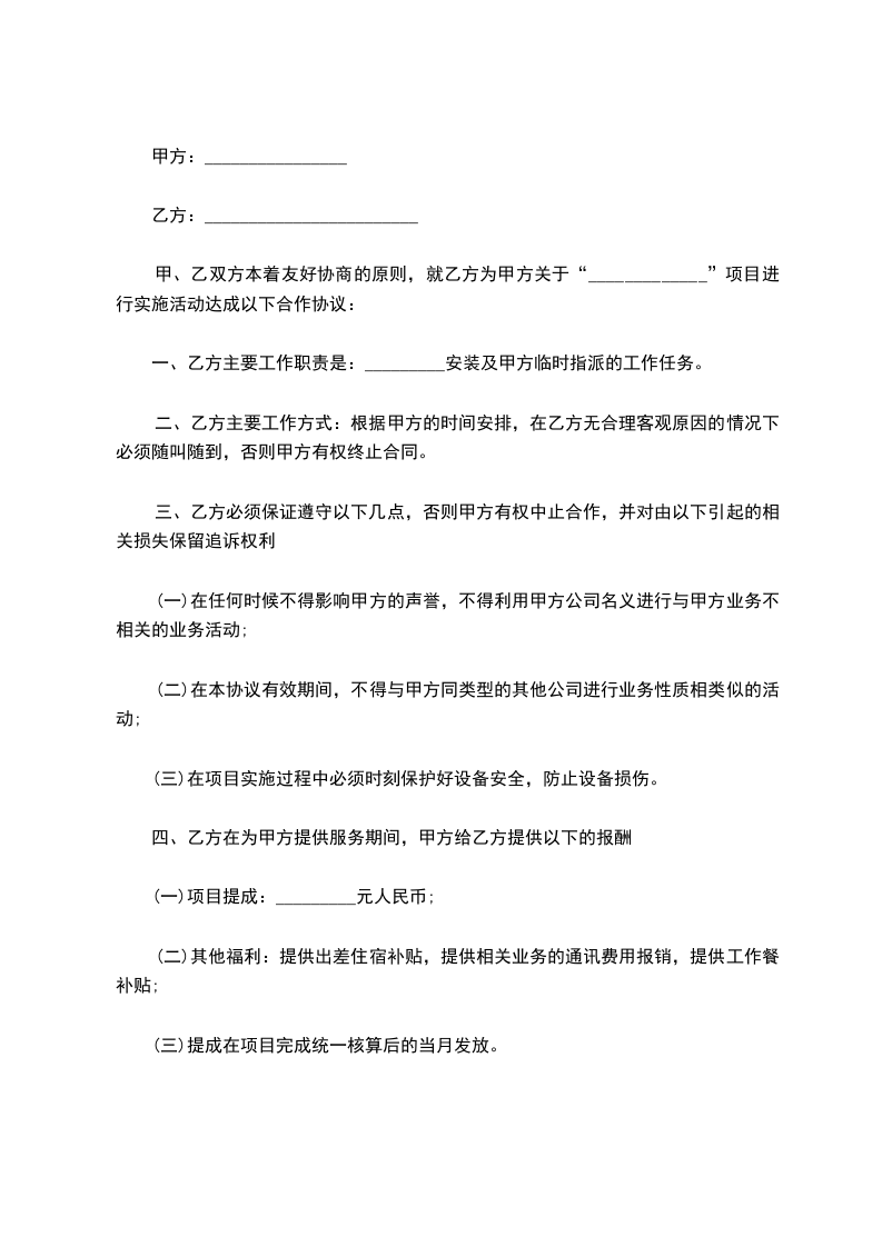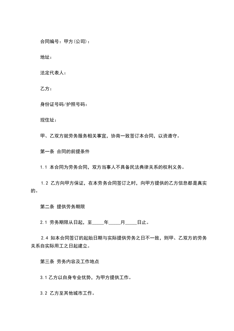 1.1 本合同为劳务合同,双方当事人不具备民法典律关系的权利义务。