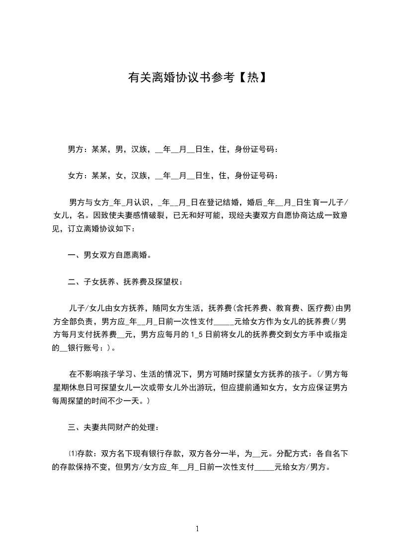 男方与女方_年_月认识,_年__月_日在登记结婚,婚后_年__月_日生育一儿子/女儿,名。因致使夫妻感情破裂,已无和好可能,现经夫妻双方自愿协商达成一致意见,订立离婚协议如下: