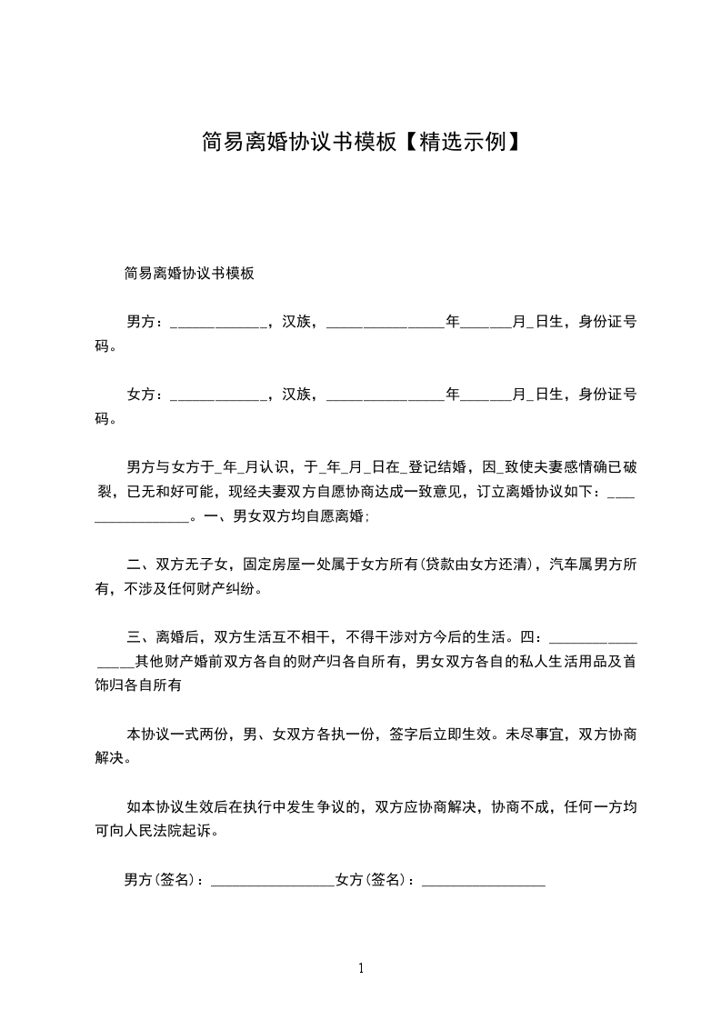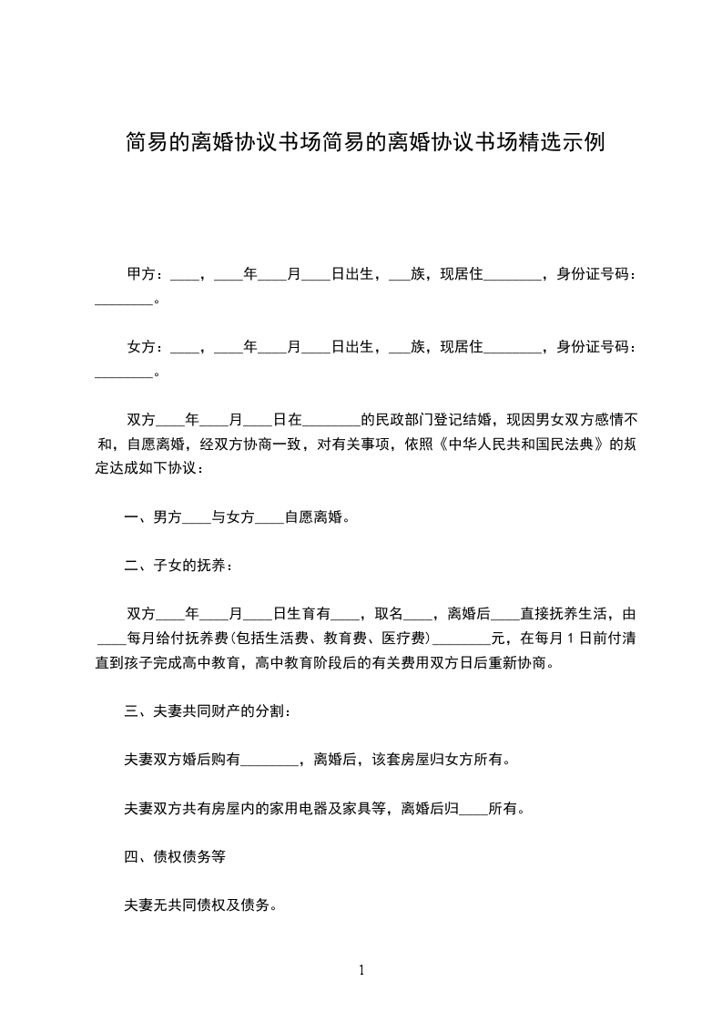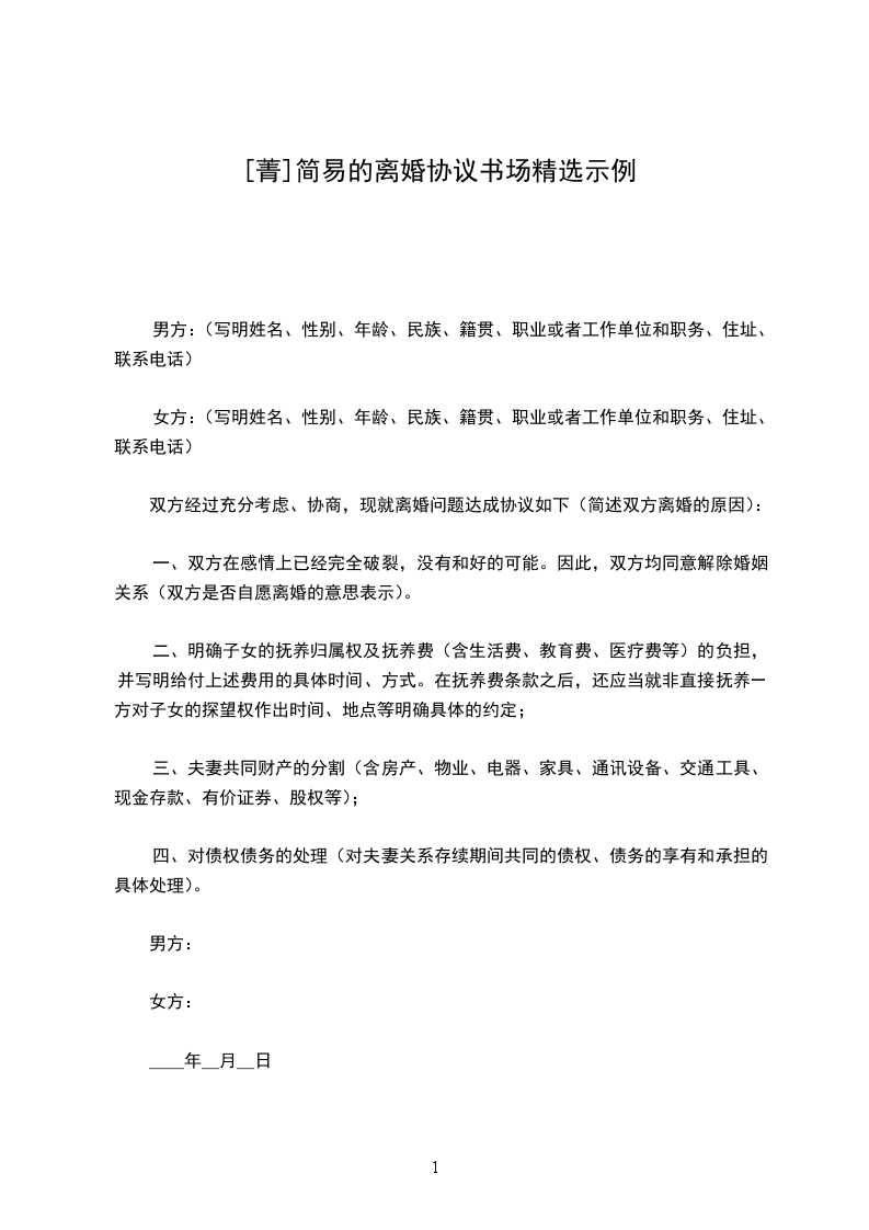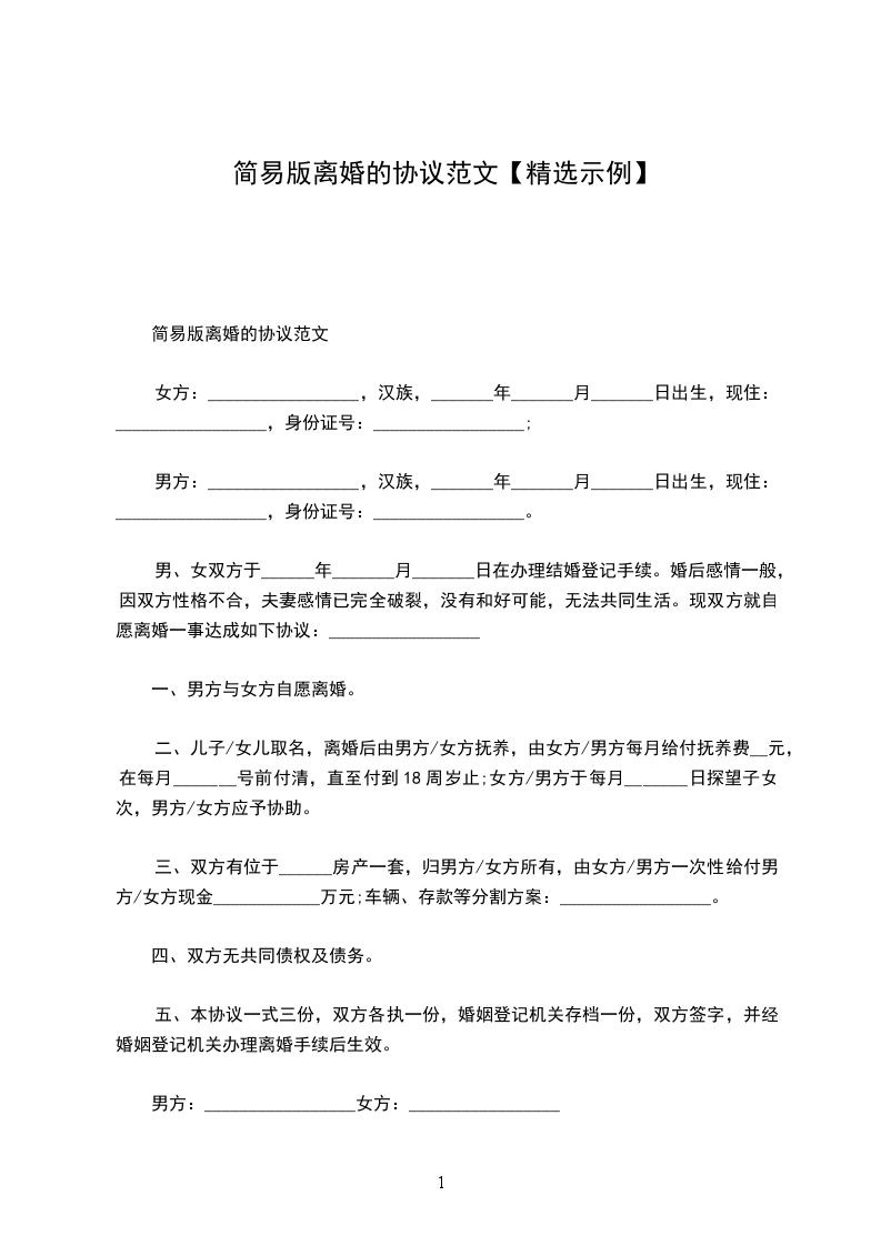 一、男方____与女方____自愿离婚。