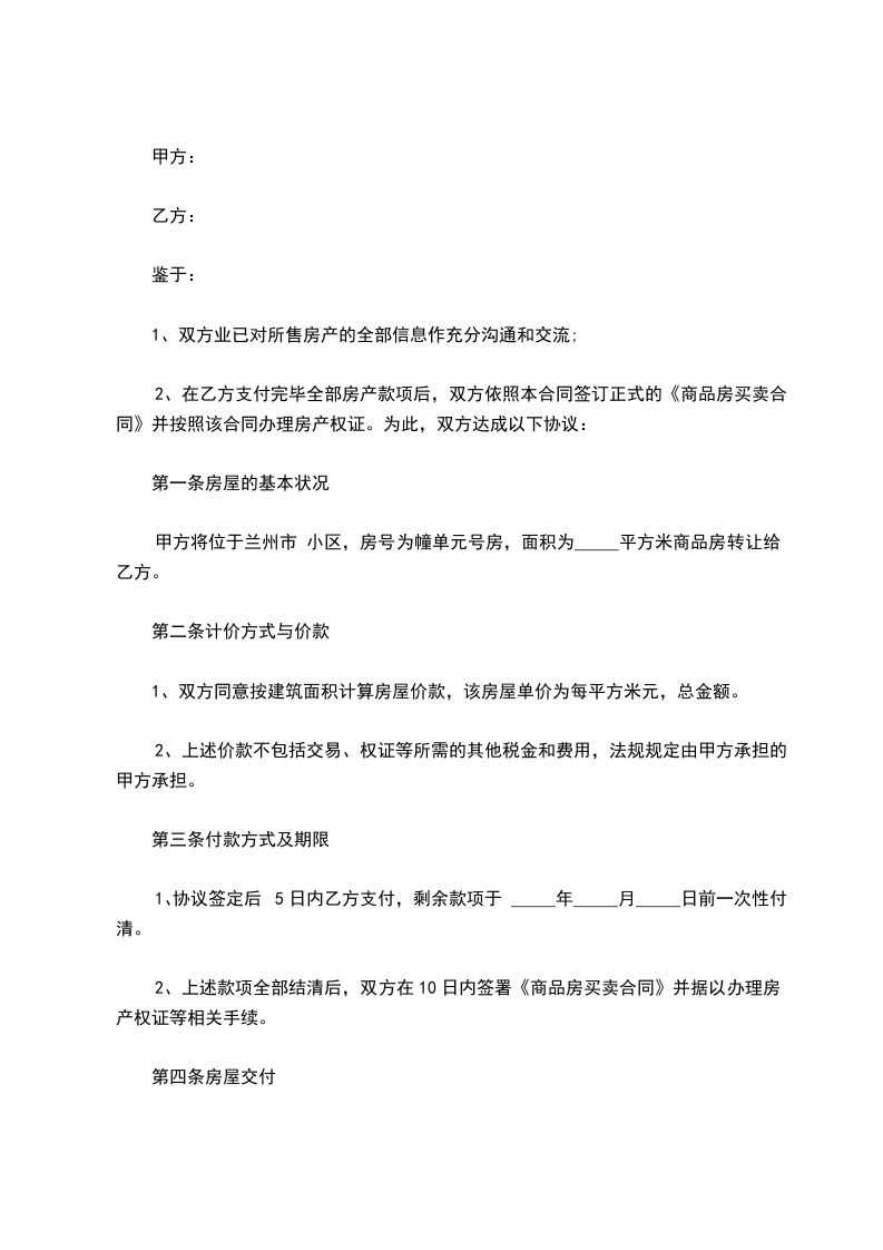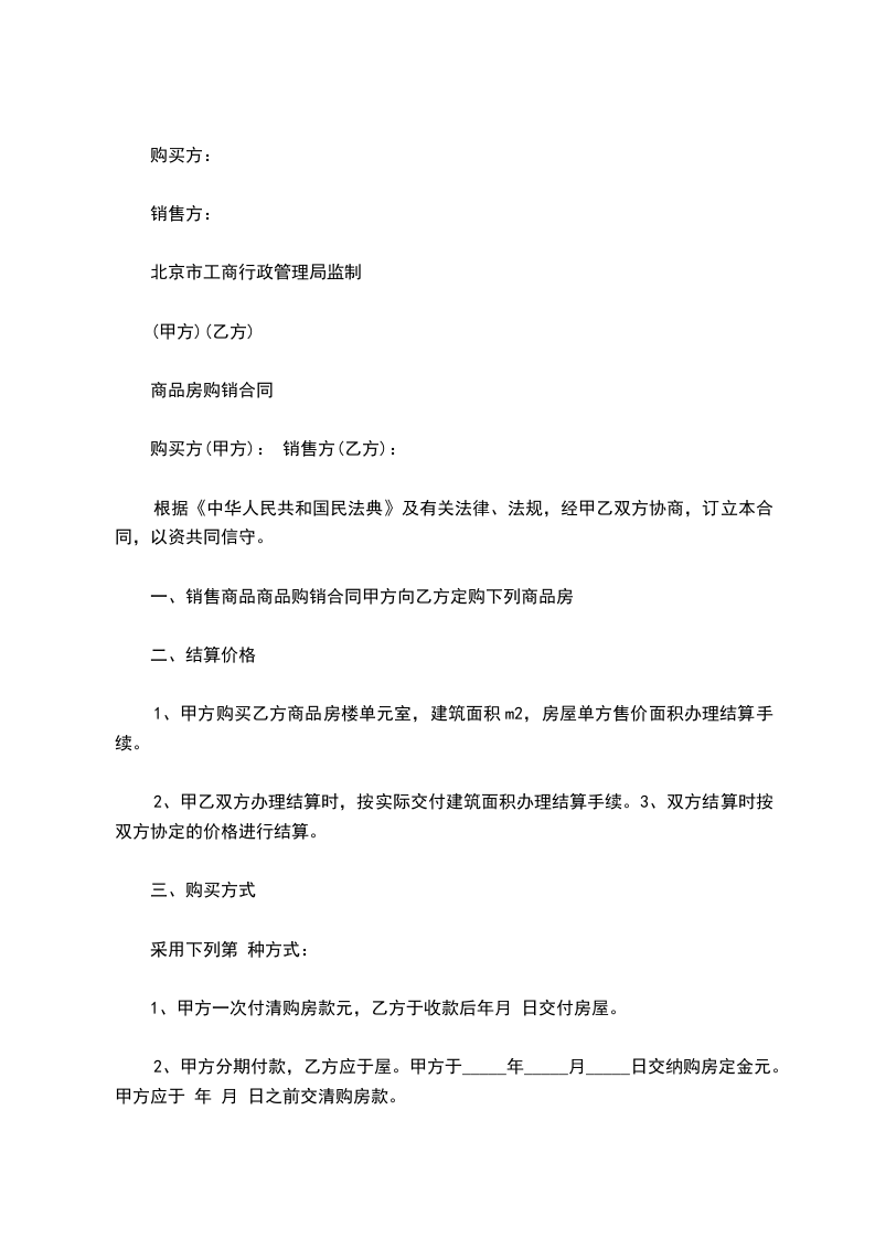 1、甲方购买乙方商品房楼单元室,建筑面积m2,房屋单方售价面积办理结算手续。
