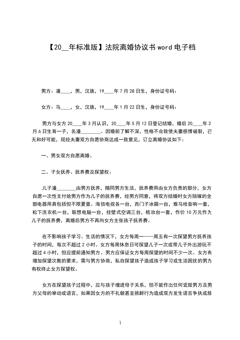 女方:_,_年_月_日出生,住_市__路__号,身份证号:_________。