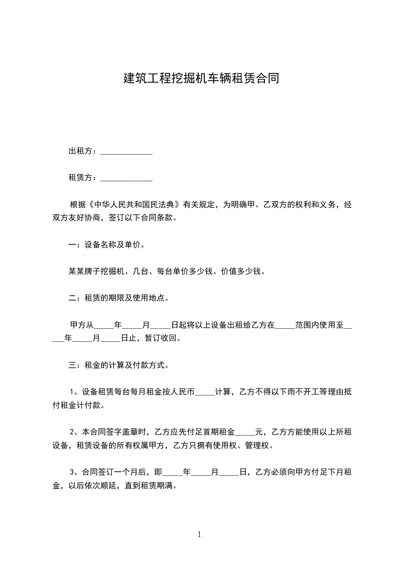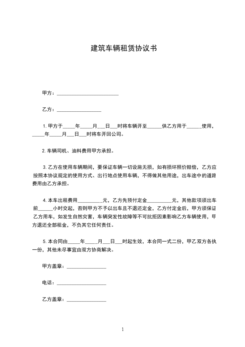 1、租赁价格:每月租赁费用人民币_________元,大写叁仟元整(此费用包括司机费用)。