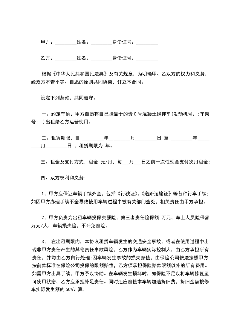 根据《中华人民共和国民法典》的有关规定,按照平等互利的原则,为明确出租方与承租方的权利义务,双方经友好协商,就_________车的租赁事宜达成一致意见,同意按下列条款签订本协议,公司车辆租赁合同[智库]。