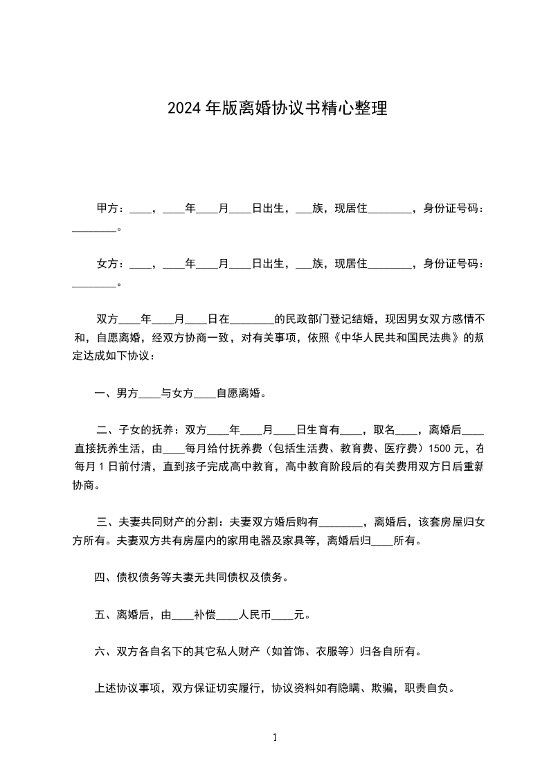 二、子女的抚养:双方____年____月____日生育有____,取名____,离婚后____直接抚养生活,由____每月给付抚养费(包括生活费、教育费、医疗费)1500元,在每月1日前付清,直到孩子完成高中教育,高中教育阶段后的有关费用双方日后重新协商。