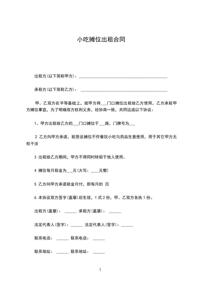 1、乙方在该摊位上只能经营小吃,否则按违约并终止此租赁协议。乙方必须服从甲方市场管理人员的管理,做到诚信经营,乙方签订协议时一次性向甲方交纳 元质量保证金。在乙方租期终止不再续约或到期退租时如乙方未违反甲方管理规定、无任何经济处罚的,甲方一次性将质量保证金退还乙方。