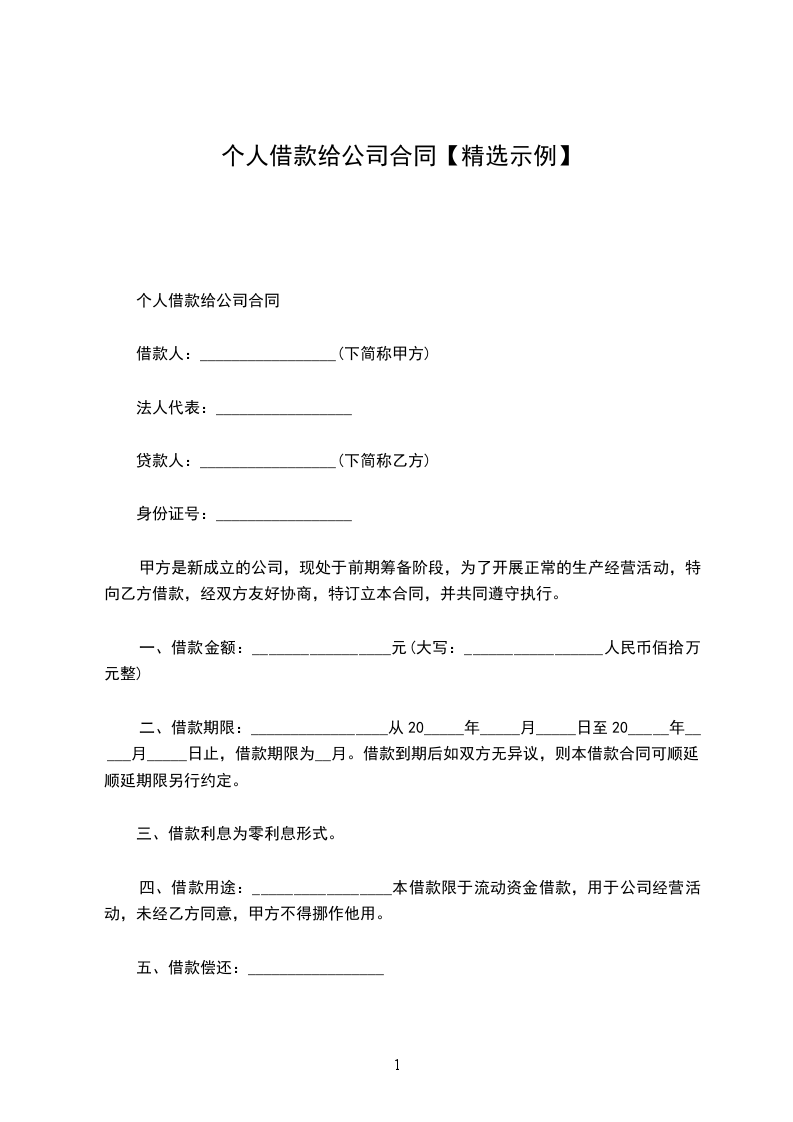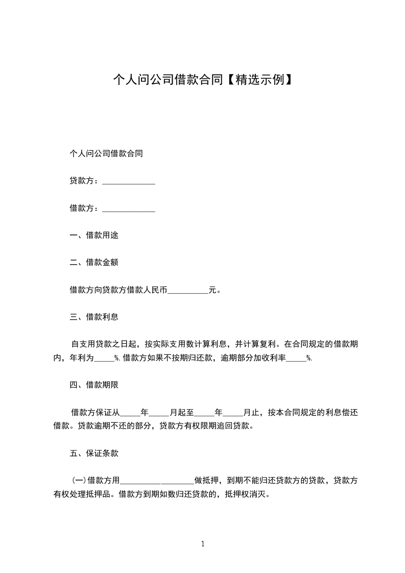 一、借款金额(大写)