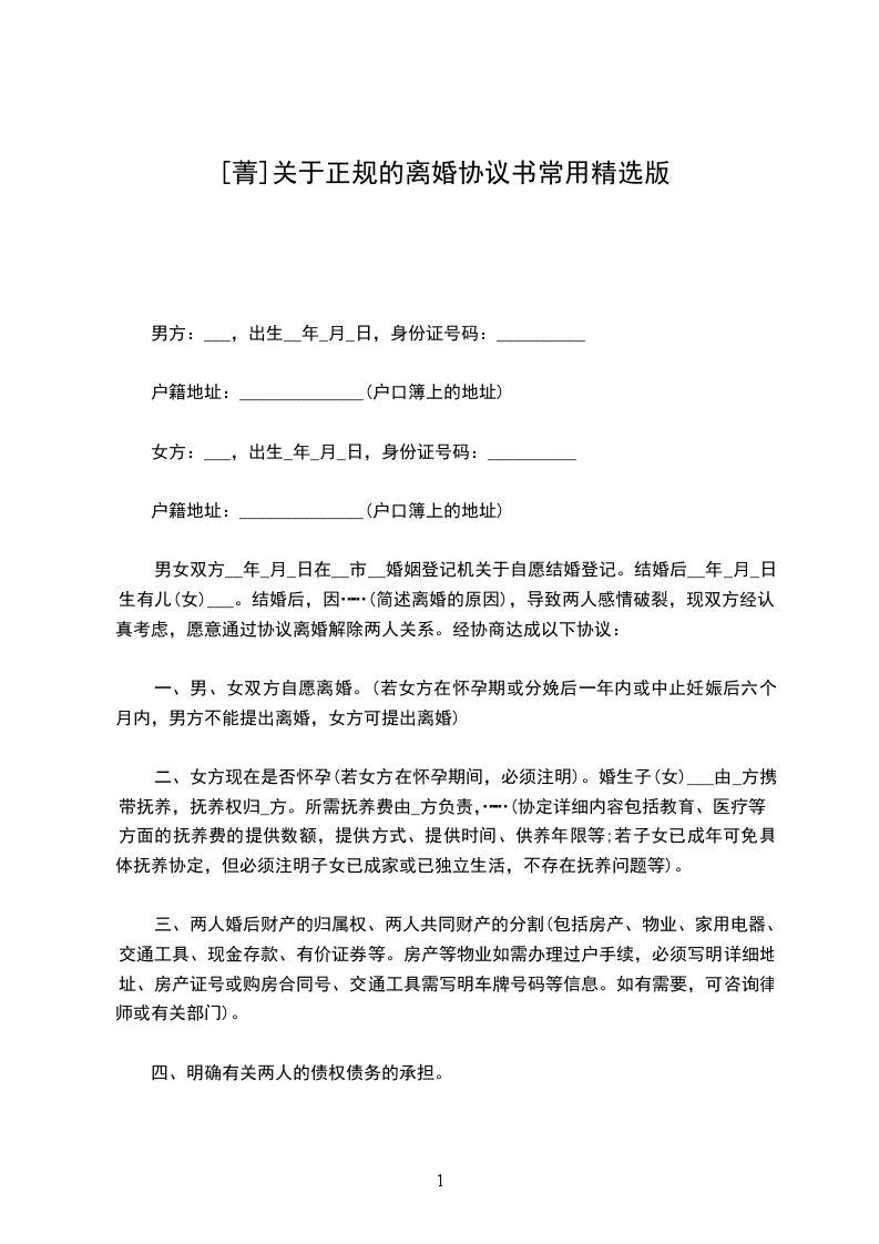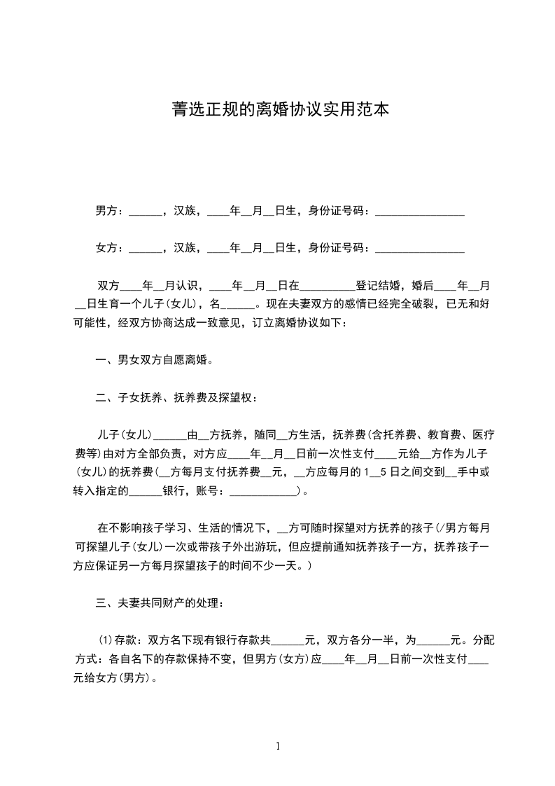一、男女双方自愿离婚。