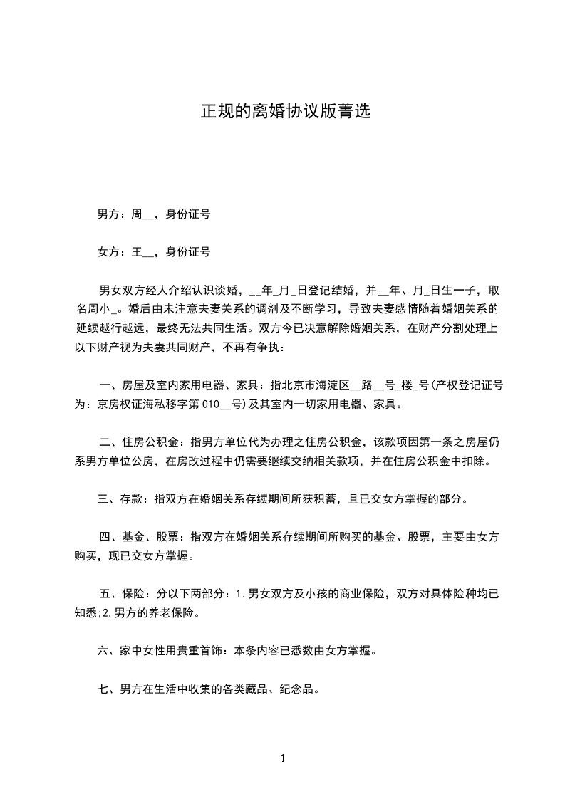 七、本协议一式两份,男女双方各执一份,自婚姻登记机关颁发《离婚证》之日生效。