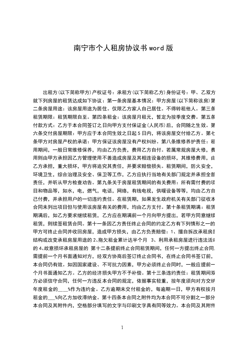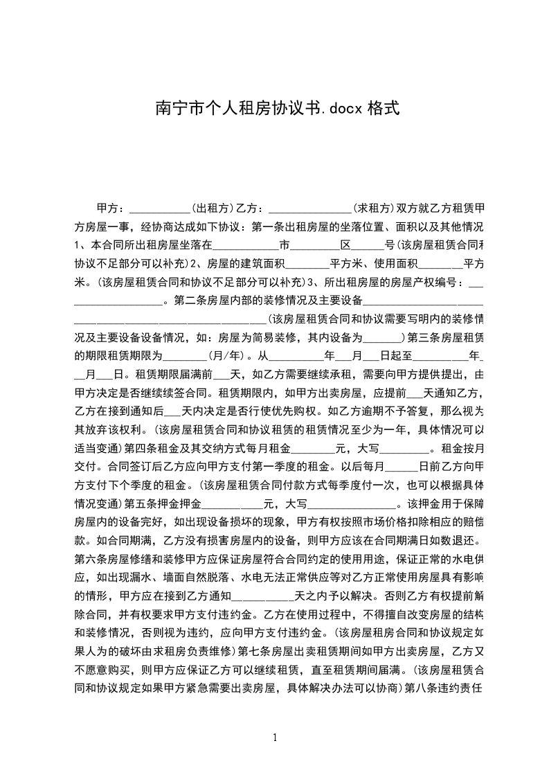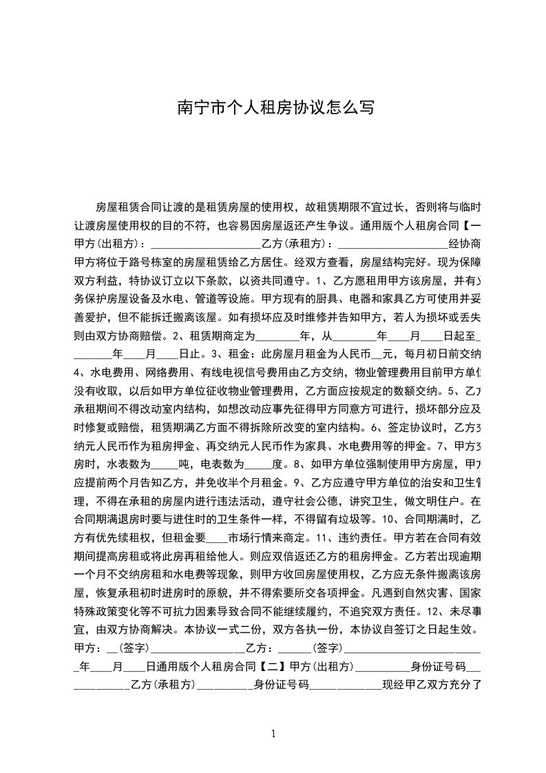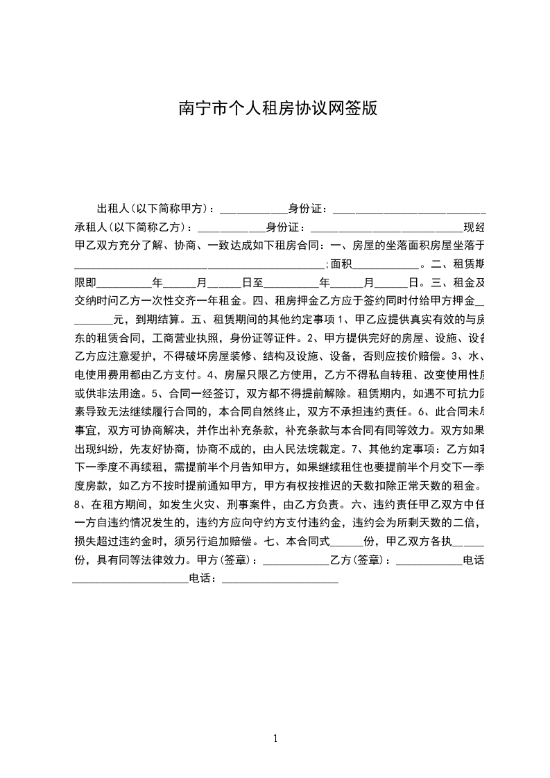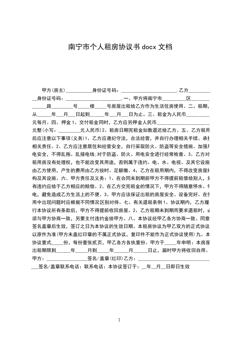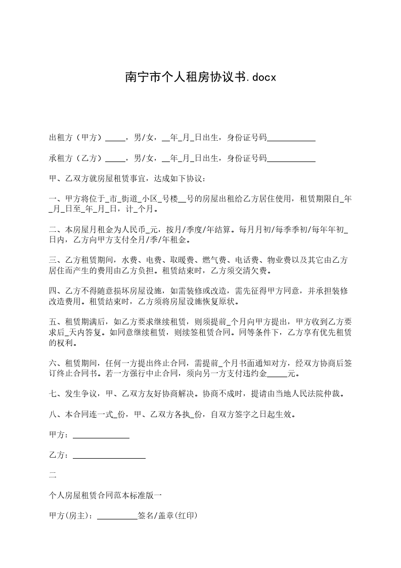承租方(乙方)_____,男/女,__年_月_日出生,身份证号码____________