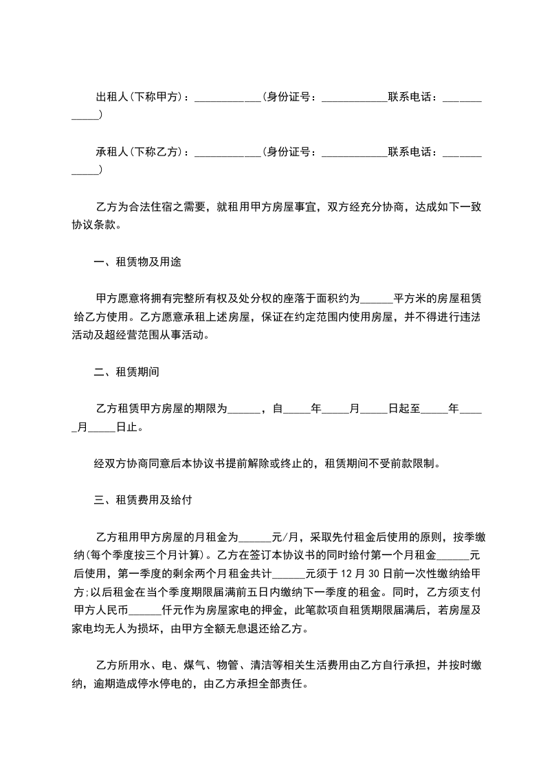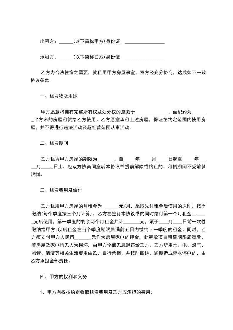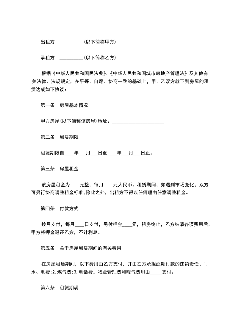 根据《民法典》及相关法律法规的规定,就甲方将房屋出租给乙方使用,乙方承租甲方房屋事宜,经协商一致,订立本合同。