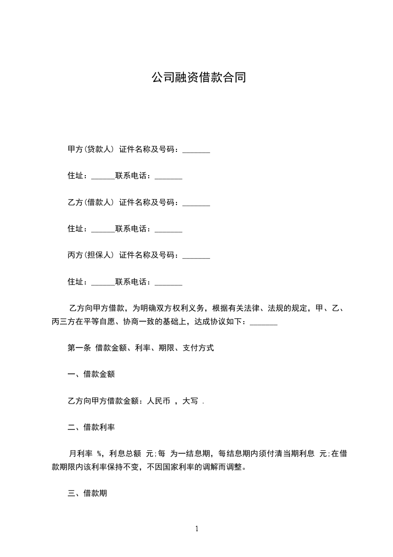 借款人:________________(以下简称甲方)法定代表人:_____________委托代理人:_____________公司住所:_________________