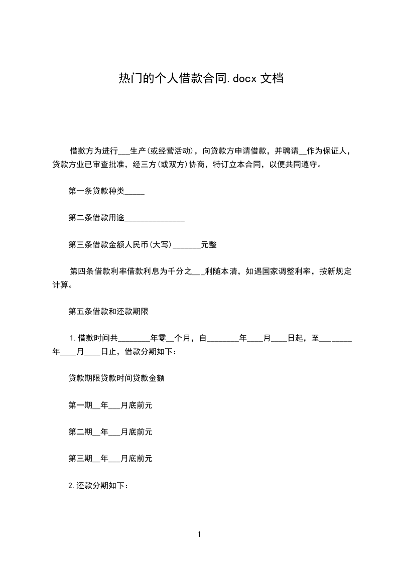 第五条借款和还款期限
