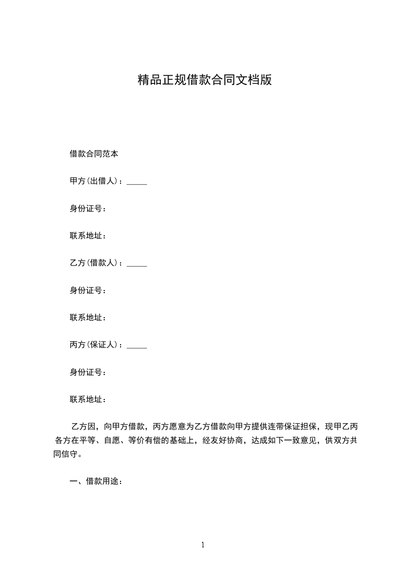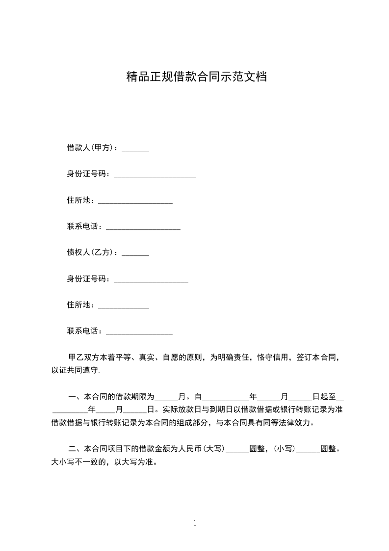 一、乙方贷给甲方人民币(大写)_____________________,_____________________前交付甲方。