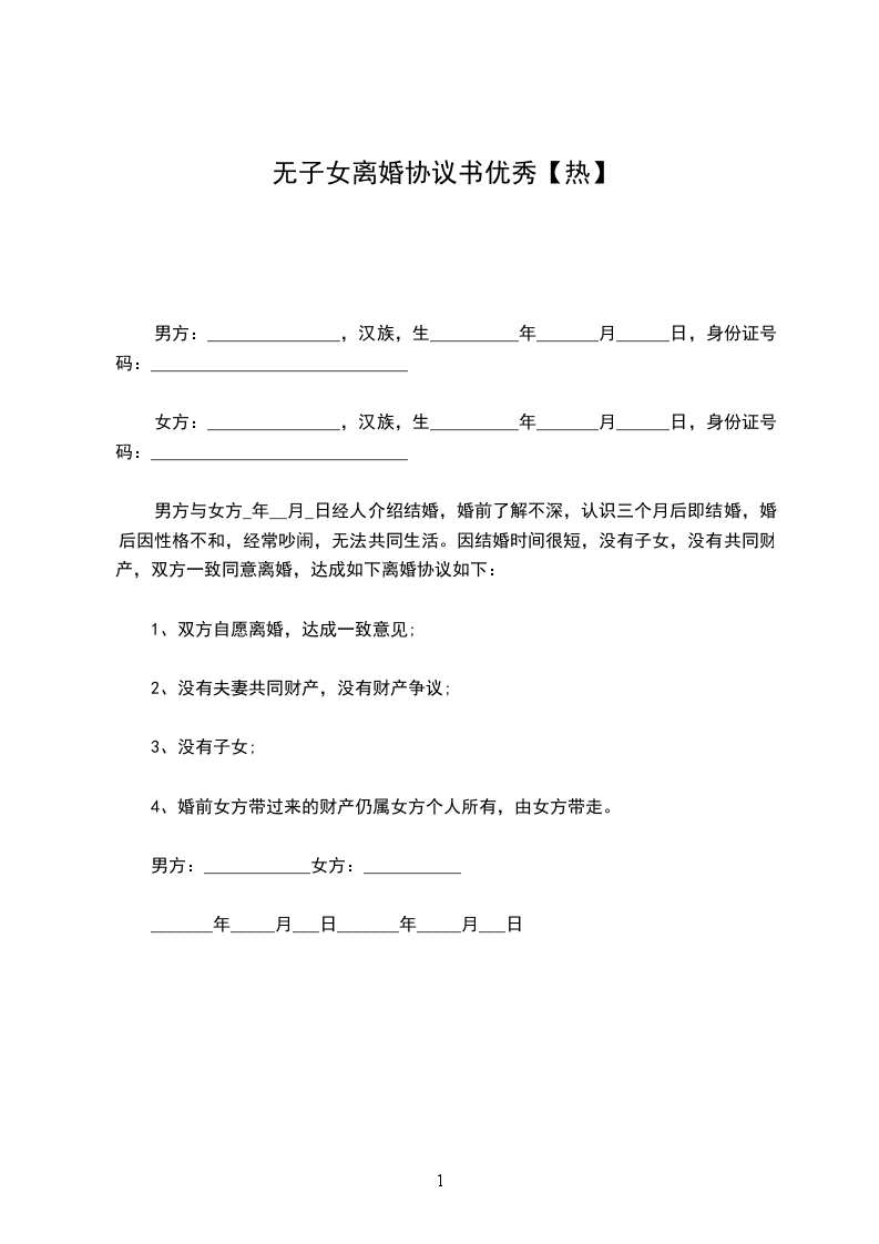 女方:_________,____年_____月_____日出生,____族,身份证号:______________,住________________