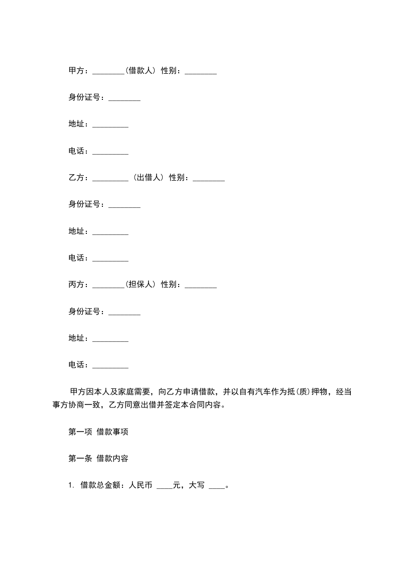 第二条甲方向乙方借款(人民币)__________元,______(大写)。