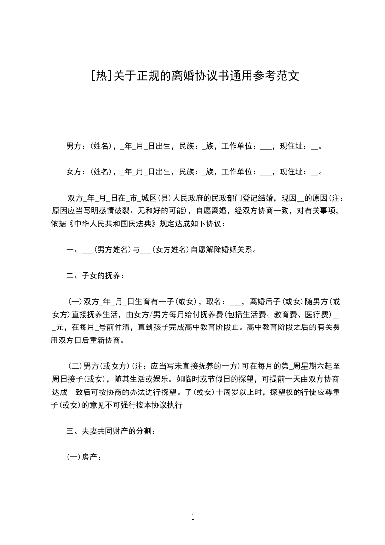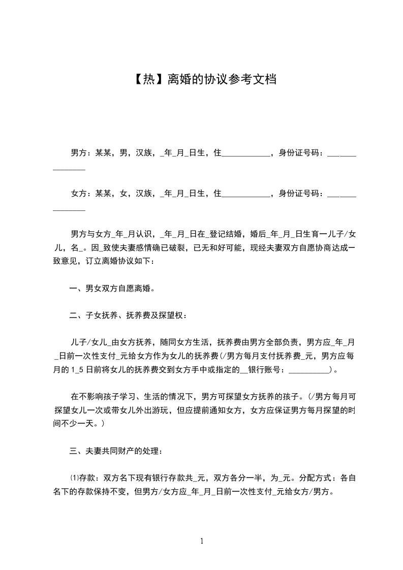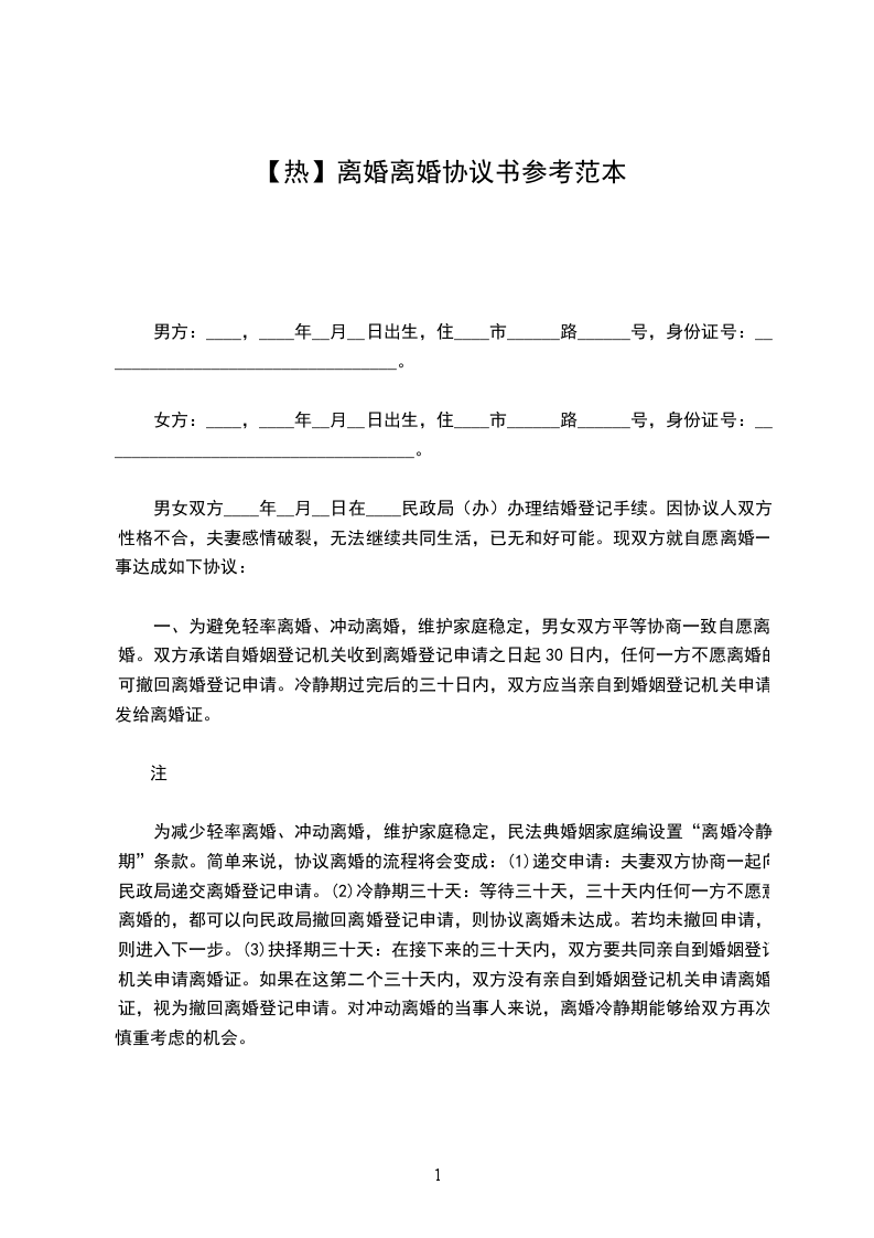 》篇4男方:___,男,汉族,__年__月__日生,住__市___街___号,身份证号码:__________________