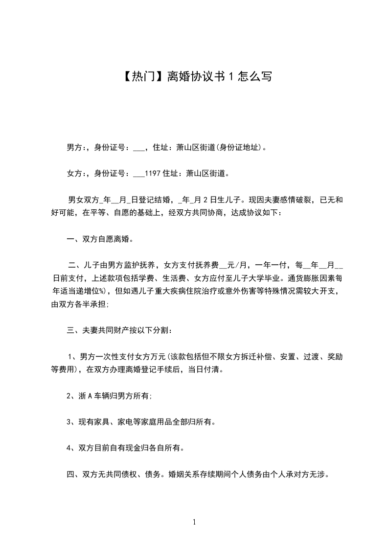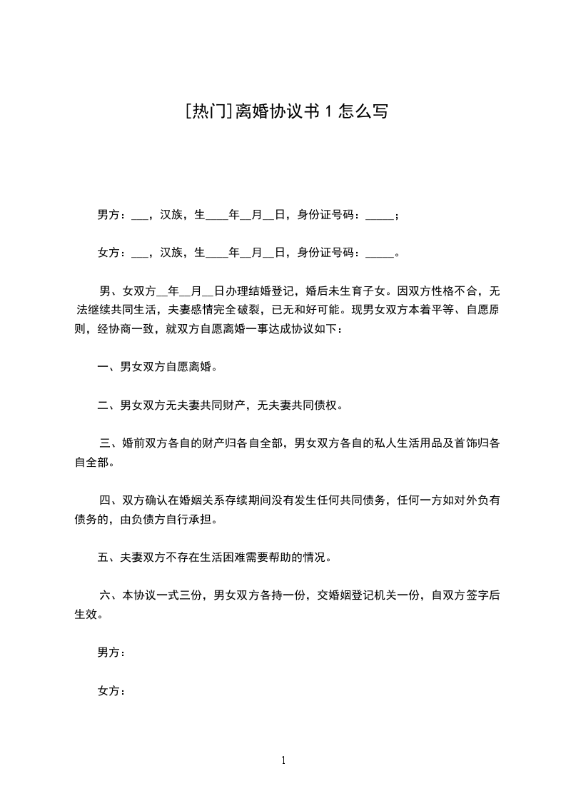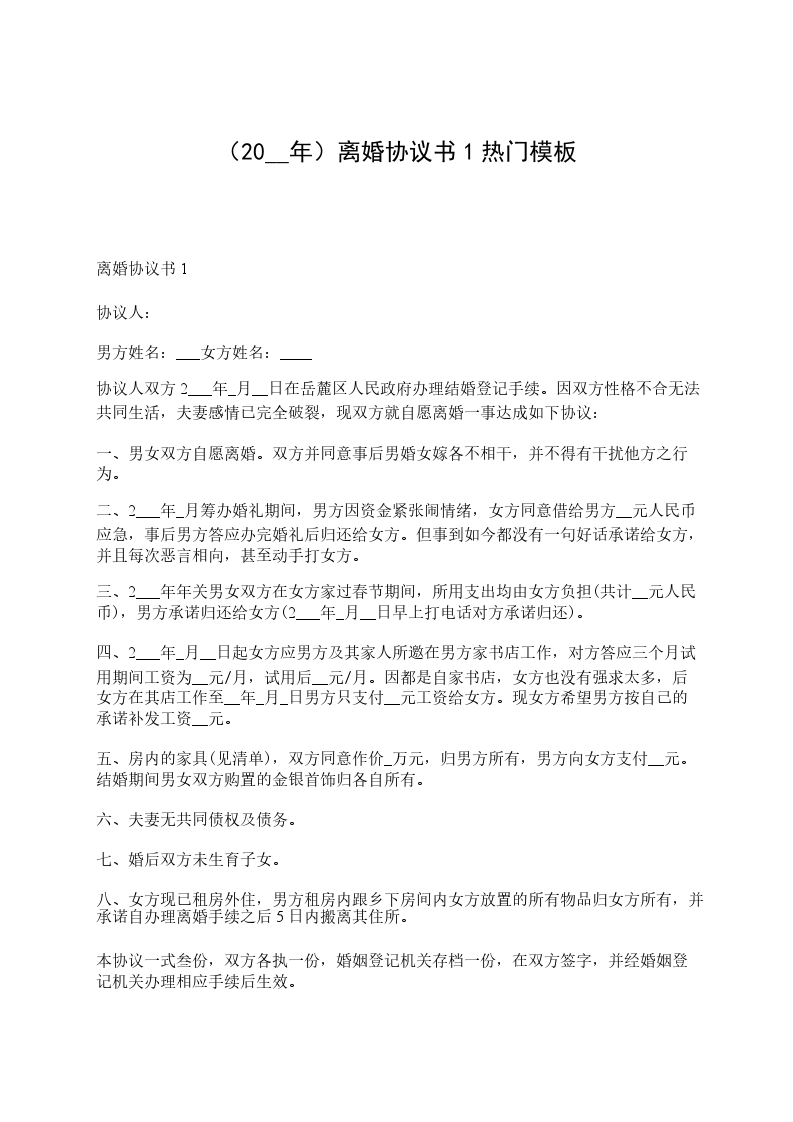 我们双方__年8月26日在双水登记处登记结婚,婚后因性格不合造成感情破裂,经协商双方完全自愿离婚,并对子女抚养、财产、债权债务等事项已达成如下一致处理意见: