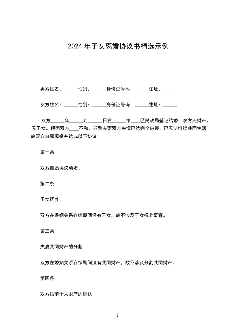 男方姓名:______性别:______身份证号码:______住址:______