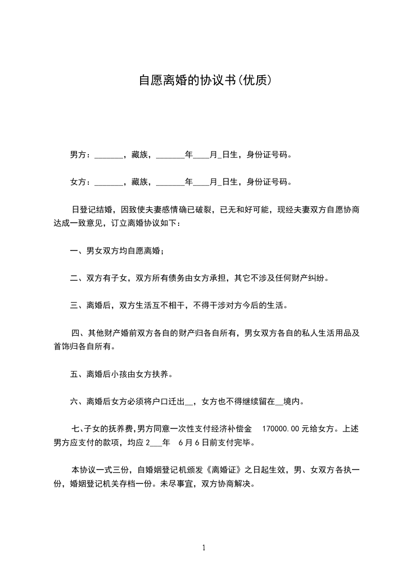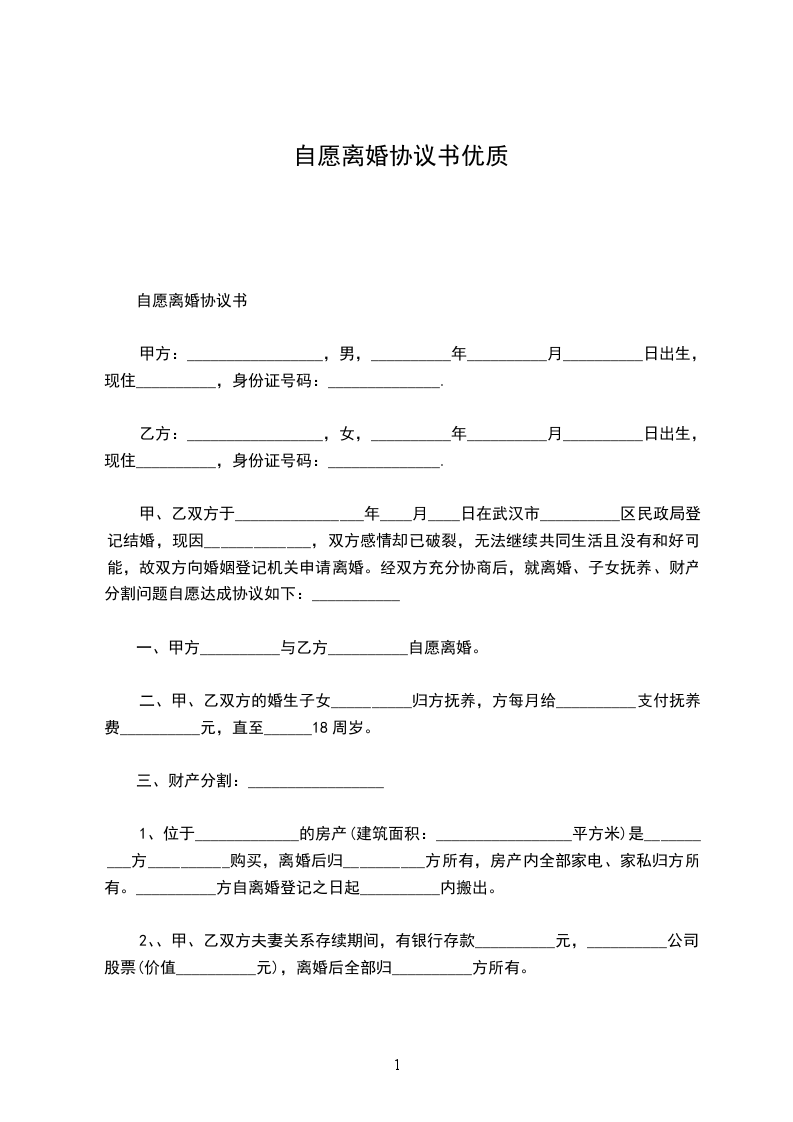 自愿离婚协议1