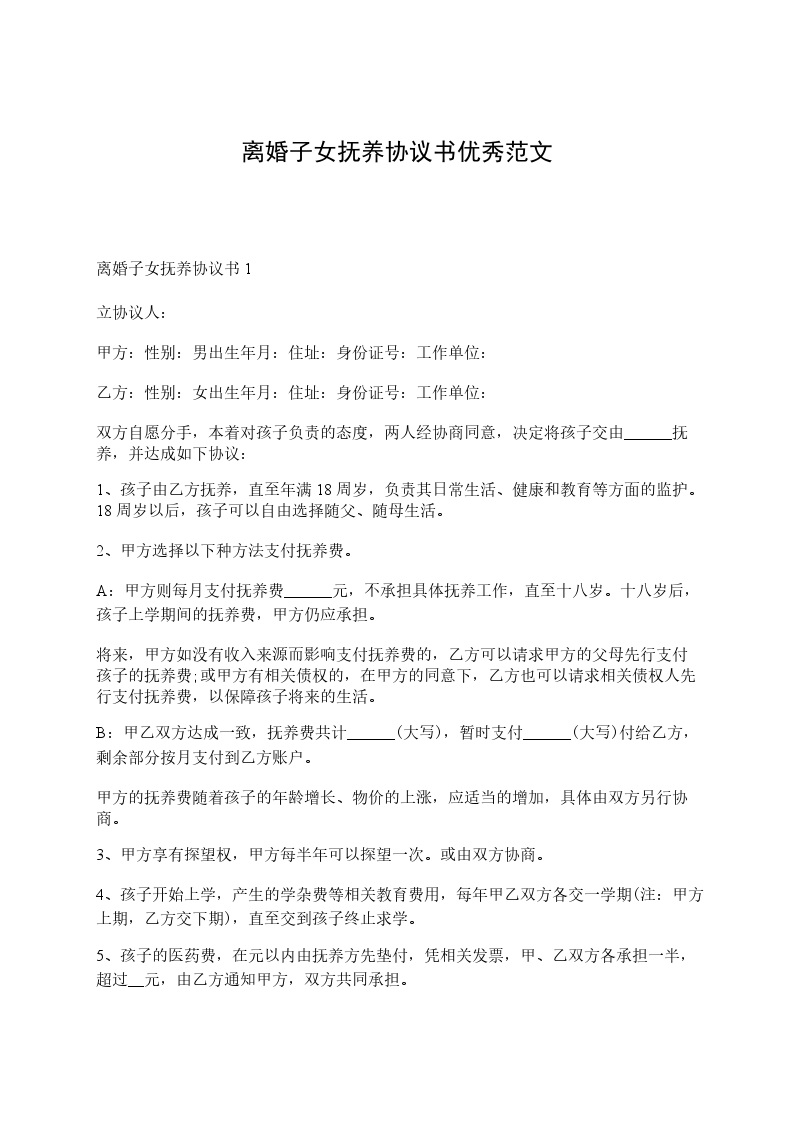 八、本协议书一式三份,甲乙双方各执一份,婚姻登记部门保留一份。在双方签字,并经婚姻登记机关办理相应手续后生效。