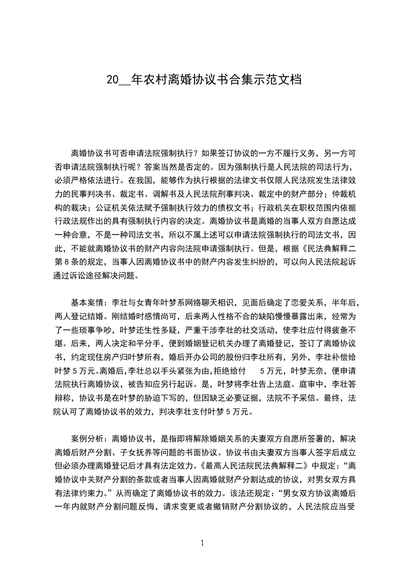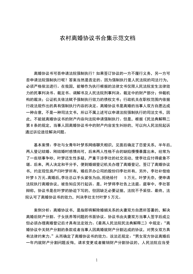 案例分析:离婚协议书,是指即将解除婚姻关系的夫妻双方自愿所签署的,解决离婚后财产分割、子女抚养等问题的书面协议。协议书由夫妻双方当事人签字后成立,但必须办理离婚登记后才具有法定效力。《最高人民法院民法典解释二》中规定:“离婚协议中关财产分割的条款或者当事人因离婚就财产分割达成的协议,对男女双方具有法律约束力。”从而确定了离婚协议书的效力。该法还规定:“男女双方协议离婚后一年内就财产分割问题反悔,请求变更或者撤销财产分割协议的,人民法院应当受理。”“人民法院审理后,未发现订立财产分割协议时存在欺诈、胁迫等情形的,应当依法驳回当事人的诉讼请求。”可见,离婚协议书能否生效,法院一般审查协议的订立是否为当事人的真实意思表示,既要审查是否存在欺诈、胁迫等情形,还要审查协议是否违反现有法律的强制规定或社会公共利益。除非存在以上瑕疵,否则既经签订并登记,另一方就应当遵照执行,不得随意反悔。如果签订协议的一方不履行义务,另一方可否申请法院强制执行呢?答案当然是否定的。因为强制执行是人民法院的司法行为,必须严格依法进行。在我国,能够作为执行根据的法律文书仅限人民法院发生法律效力的民事判决书、裁定书、调解书及人民法院刑事判决、裁定中的财产部分;仲裁机构的裁决;公证机关依法赋予强制执行效力的债权文书;行政机关在职权范围内依据行政法规作出的具有强制执行内容的决定。离婚协议书是离婚的当事人双方自愿达成一种合意,不是一种司法文书,所以不属上述可以申请法院强制执行的司法文书,因此,不能就离婚协议书的财产内容向法院申请强制执行。但是,根据《民法典解释二》第8条的规定,当事人因离婚协议书中的财产内容发生纠纷的,可以向人民法院起诉,通过诉讼途径解决问题。所以,本案中的叶梦因离婚协议书的财产履行问题与李壮产生争议,只能到法院提起诉讼,法院经审理查明,该离婚协议书不存在无效或可撤销的法定情形,最终认定了协议书的法律效力,从而支持了叶梦的诉讼请求。